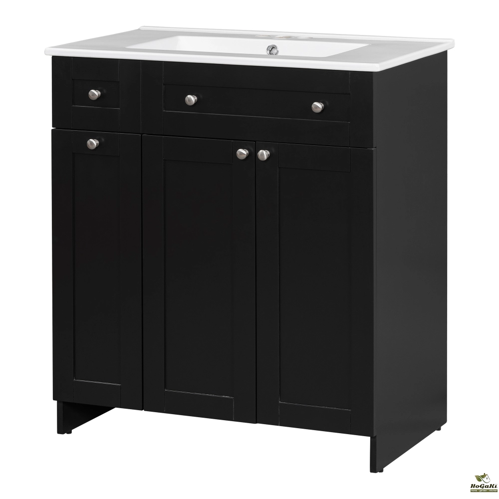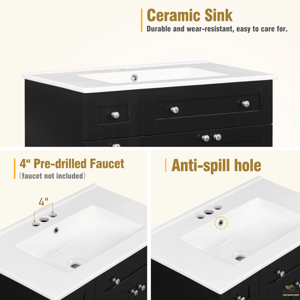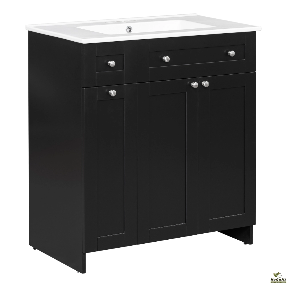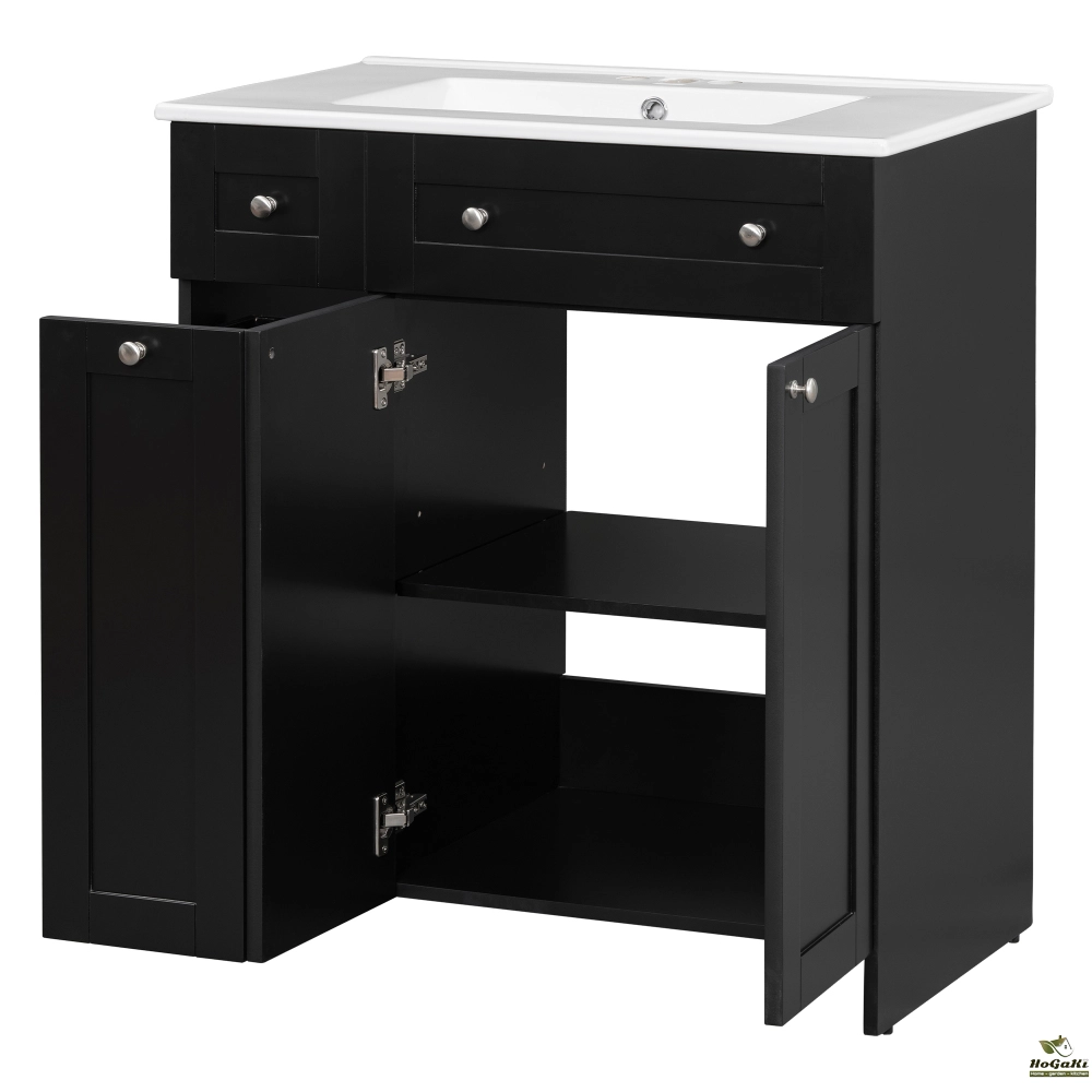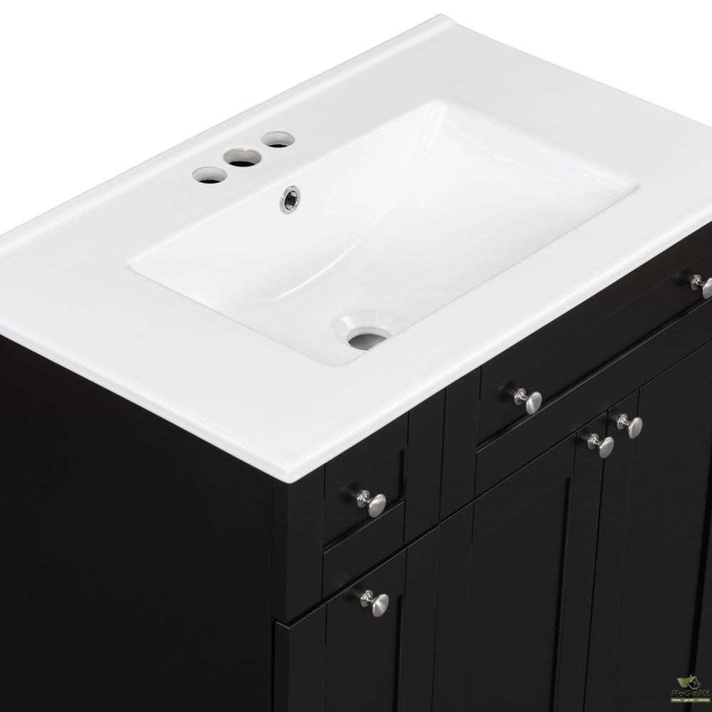 30-Inch Black Bathroom Vanity with Ceramic Sink Combo, Abundant Storage Cabinet - 2 Soft-close Doors and Double-tier Deep Drawer