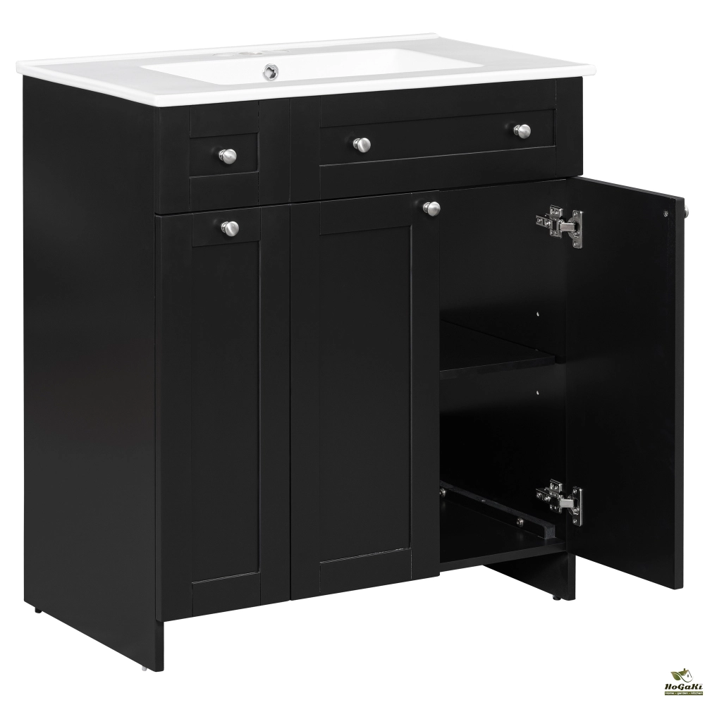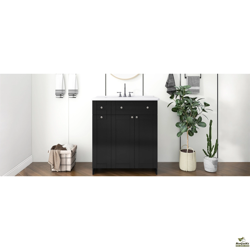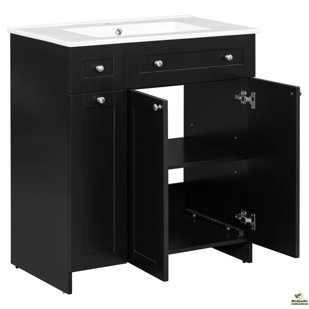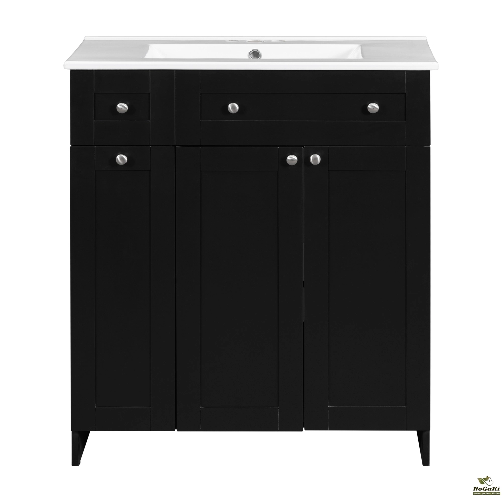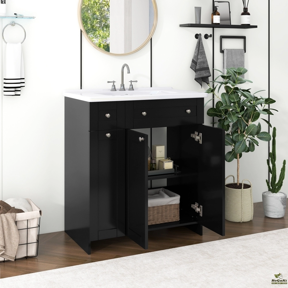 30-Inch Black Bathroom Vanity with Ceramic Sink Combo, Abundant Storage Cabinet - 2 Soft-close Doors and Double-tier Deep Drawer