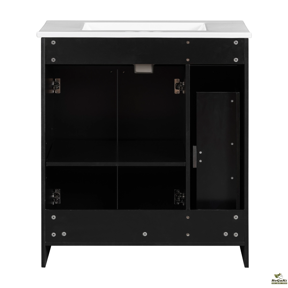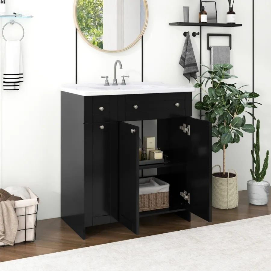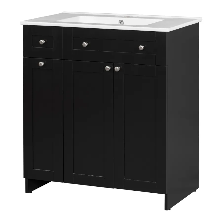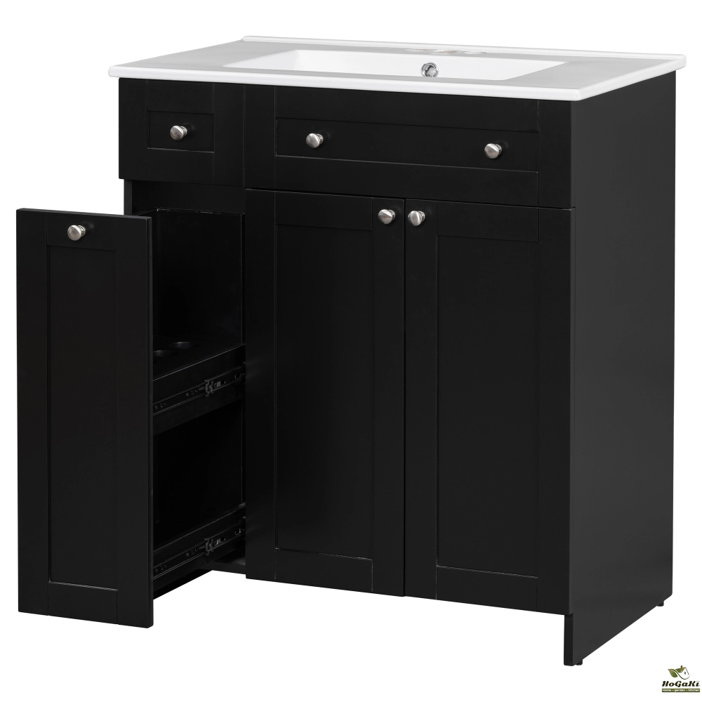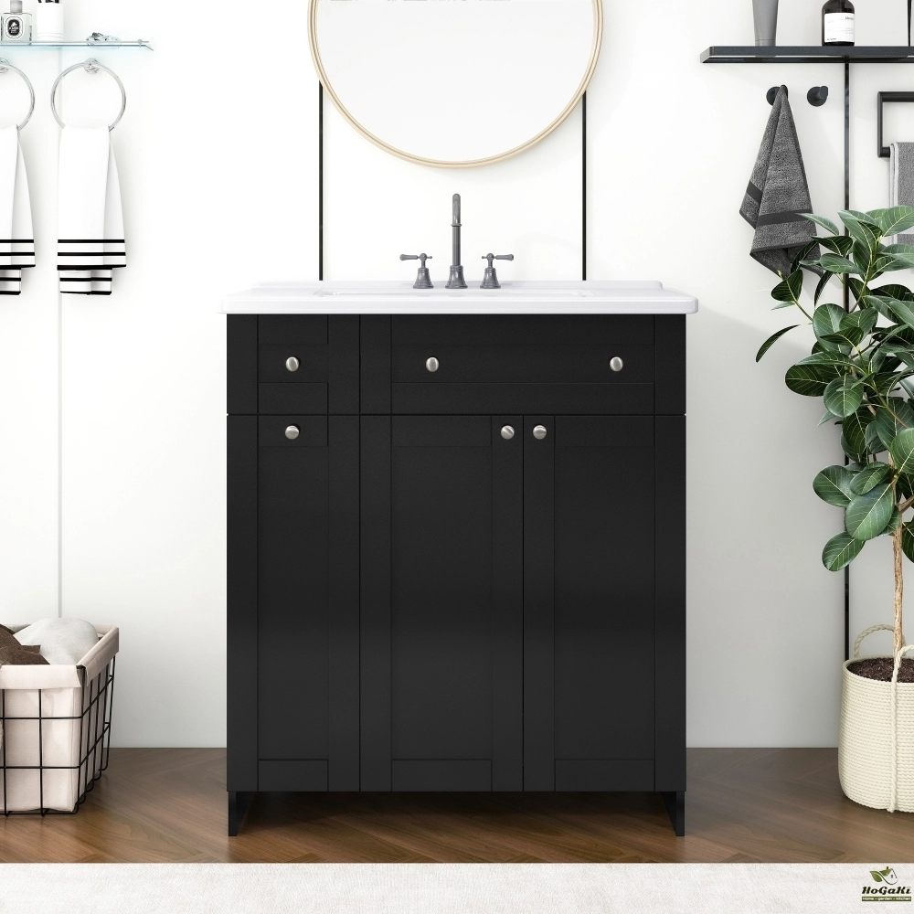 30-Inch Black Bathroom Vanity with Ceramic Sink Combo, Abundant Storage Cabinet - 2 Soft-close Doors and Double-tier Deep Drawer