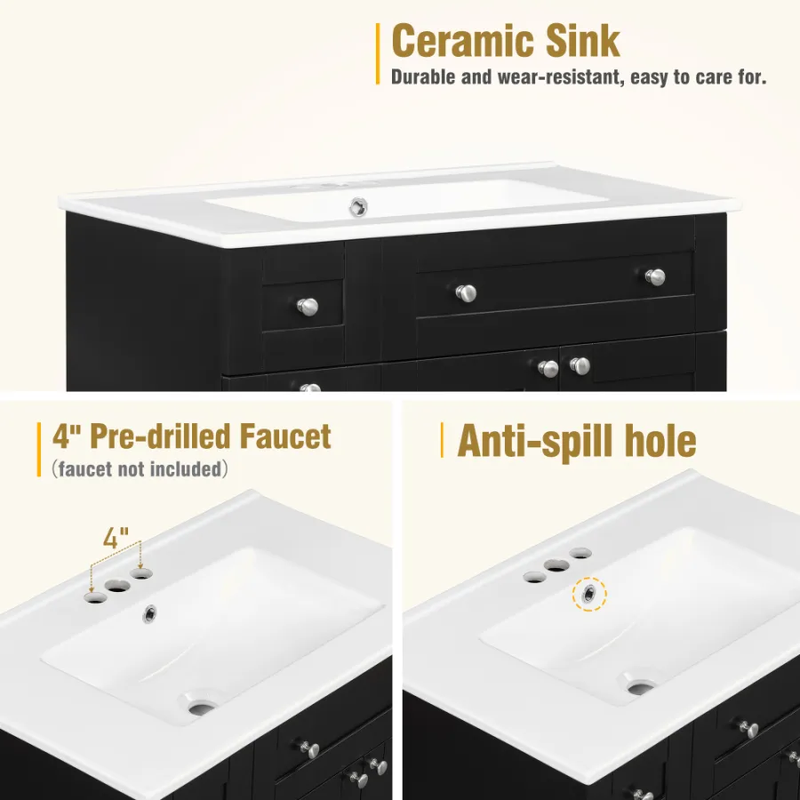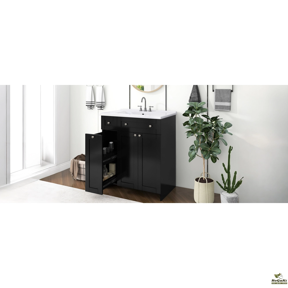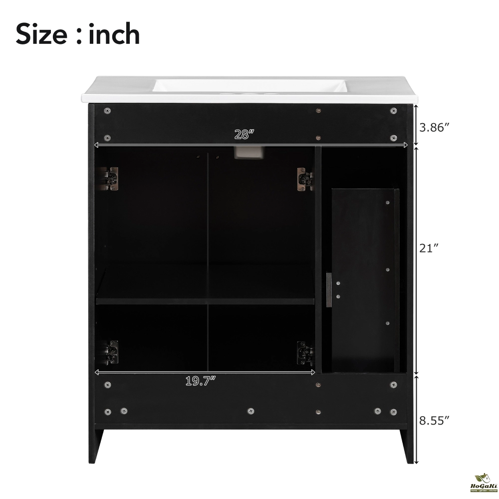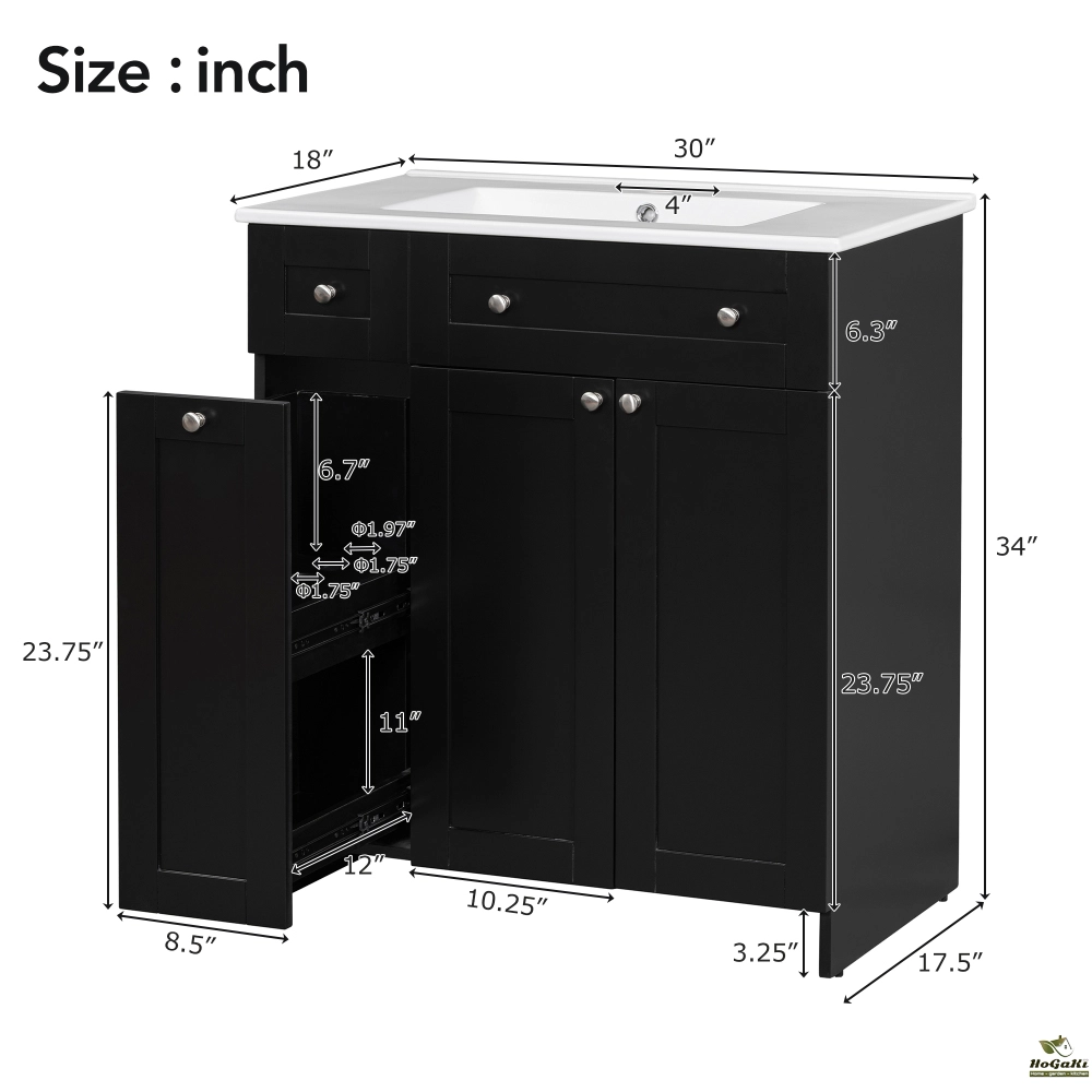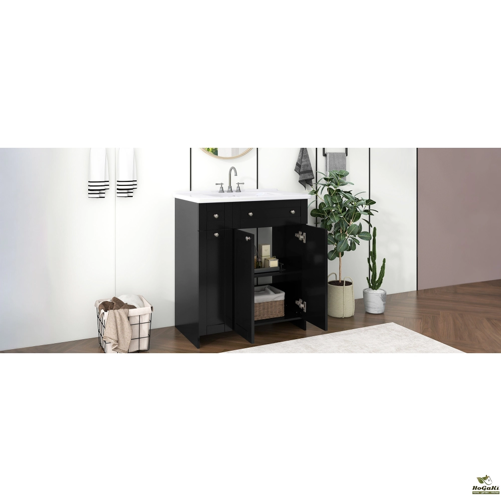 30-Inch Black Bathroom Vanity with Ceramic Sink Combo, Abundant Storage Cabinet - 2 Soft-close Doors and Double-tier Deep Drawer