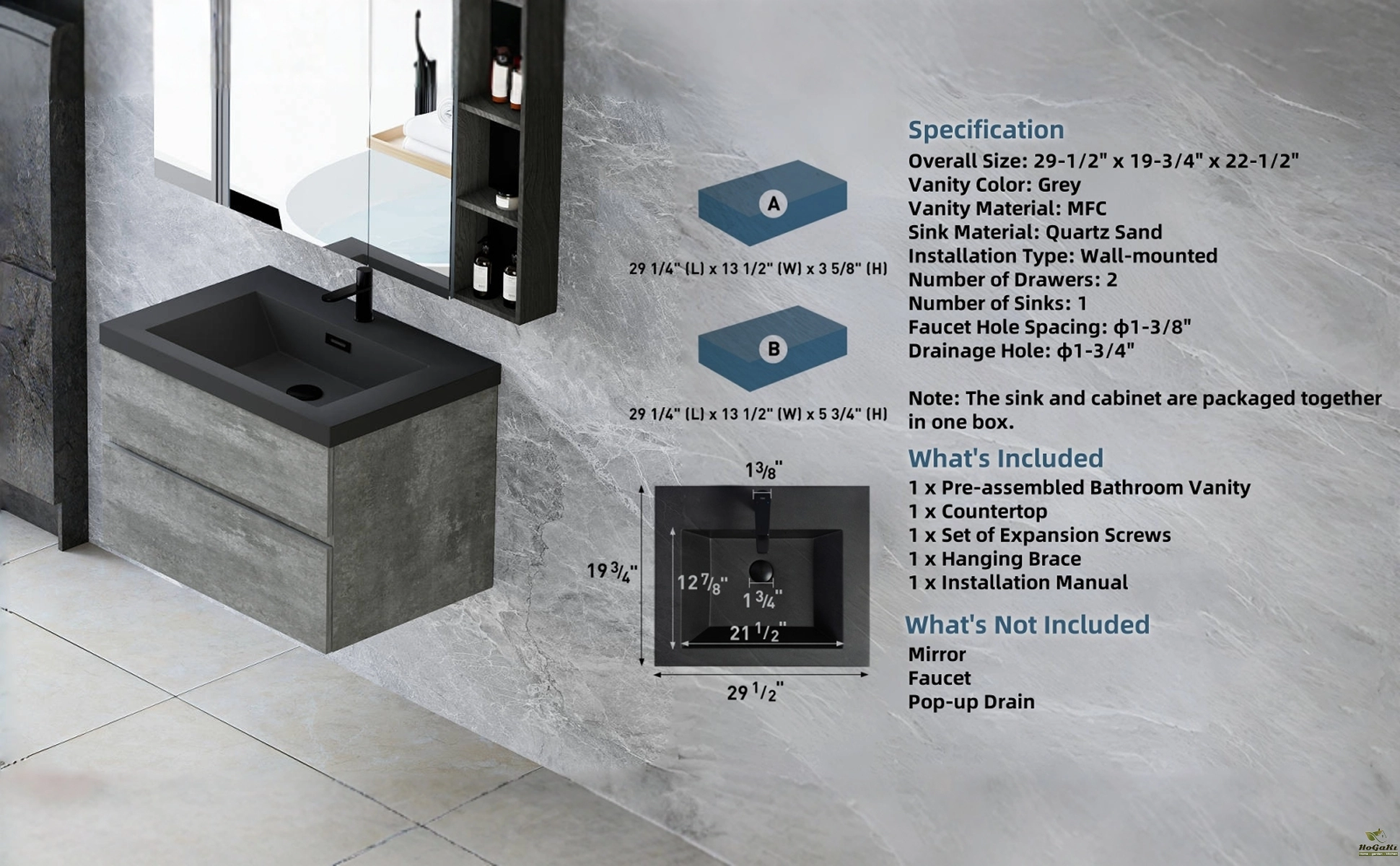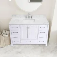 Easy to Install: The open back design allows for easy plumbing. All components are pre-drilled for quick assembly in less than 30 minutes. Experience convenience and sophistication in your bathroom with this stylish and functional vanity solution.