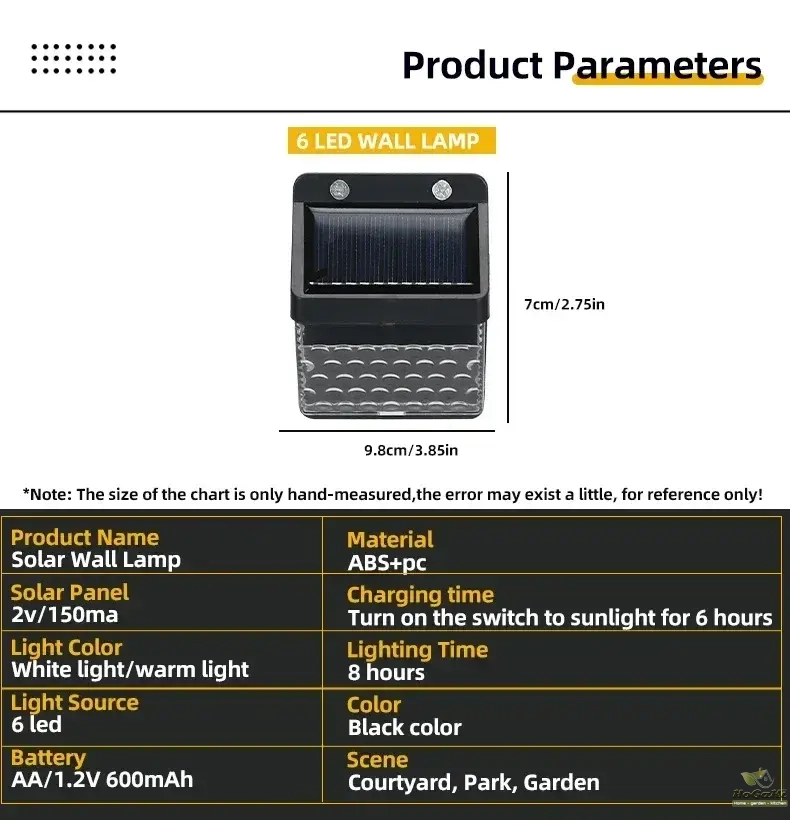 1. Wide application: IP65 outdoor solar lamp, suitable for garden, swimming pool, fence, courtyard, driveway, stairs, external wall, etc., heat resistant, weatherproof, no need to worry about outdoor damage