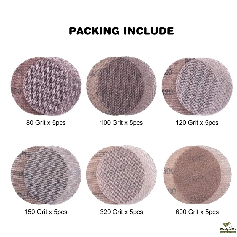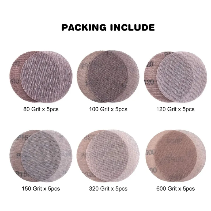 AT48-30 Pcs Mesh Sanding Discs 125Mm 80-600 Grit Hook And Loop Sanding Paper Dry Abrasive Discs For Sander Replacement Pads