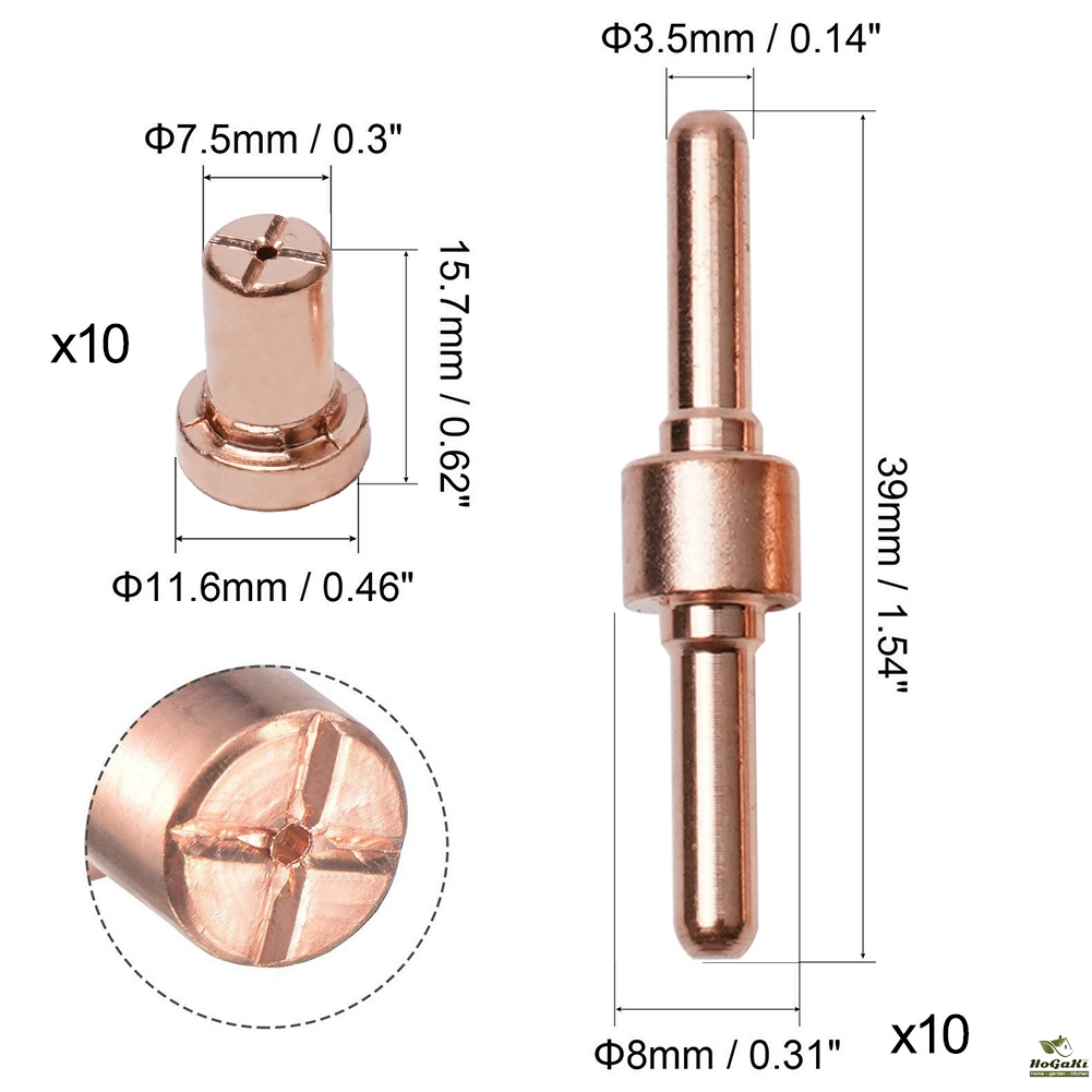 20pcs Premium 60-100A P80 Plasma Cutting Electrodes Nozzles CNC Cutter P80 Plasma Torch Consumable Tips 1.1 1.3 1.5 1.7mm