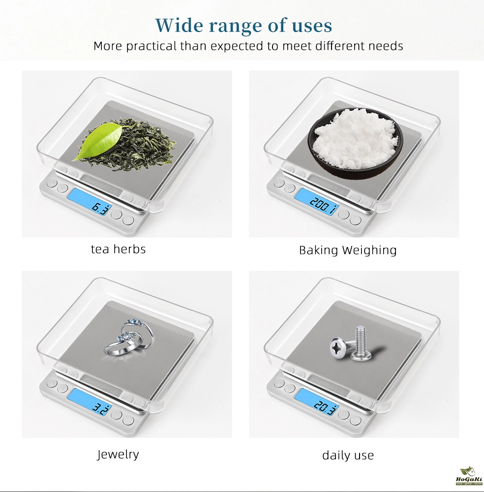 105oz/ 3kg capacity, precise to 0.0035oz/ 0.1g, the result doesn't delay nor hesitate, perfect for baking, cooking, postage and jewelry.
