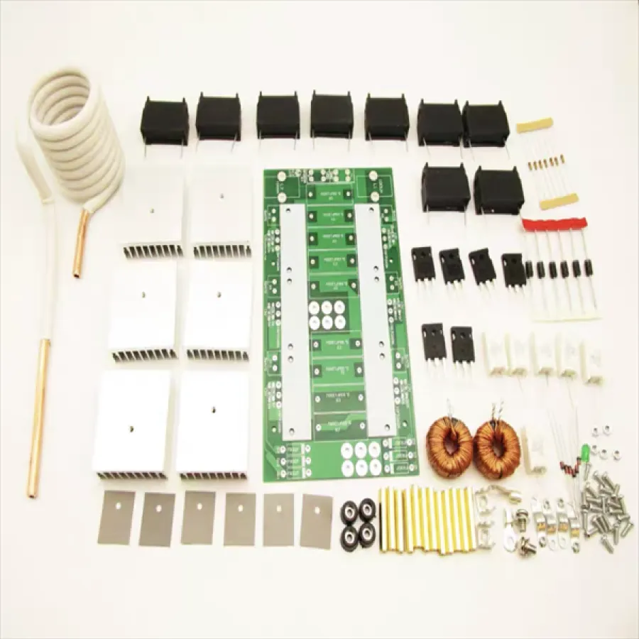 This induction heating circuit uses a 12-55V low-voltage DC power supply, with a maximum input current of 50A and a maximum power of 3000W.It can be used for DIY players to do quenching, annealing and other heat treatments for small parts, andit can also be used with graphite crucibles to smelt gold, silver, copper, aluminum, lead, tin and other metals.This circuit can directly heat iron, carbon steel, graphite and other materials containing magnetic materials, but the spiral spring cannot heat it.This product does not include a power supply and needs to be purchased separately. It is recommended to buy a communication power supply. The recommended model is Emerson R48-2900U or ZTE ZXD2400 https://www.Hogaki.com/item/4000411504911.html?spm=5261.ProductManageOnline.0.0.276f4edffbtEx4x4. The test result uses Huawei R4850S1 communication power supply.