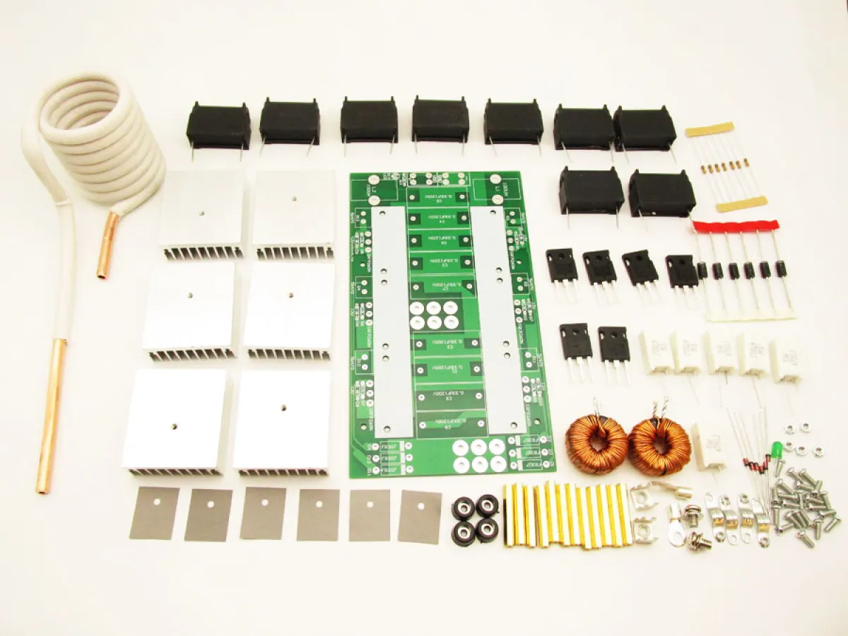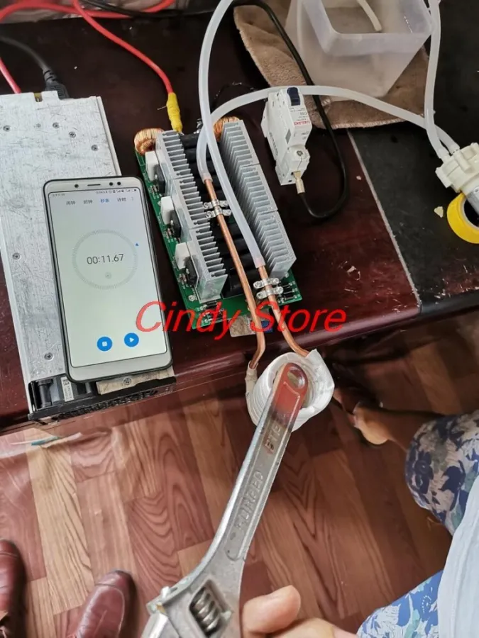 This induction heating circuit uses a 12-48V low-voltage DC power supply, with a maximum input current of 50A and a maximum power of 3000W.It can be used for DIY players to do quenching, annealing and other heat treatments for small parts, andit can also be used with graphite crucibles to smelt gold, silver, copper, aluminum, lead, tin and other metals.This circuit can directly heat iron, carbon steel, graphite and other materials containing magnetic materials, but the spiral spring cannot heat it.This product does not include a power supply and needs to be purchased separately. It is recommended to buy a communication power supply. The recommended model is Emerson R48-2900U or ZTE ZXD2400 https://www.Hogaki.com/item/4000411504911.html?spm=5261.ProductManageOnline.0.0.276f4edffbtEx4x4. The test result uses Huawei R4850S1 communication power supply.