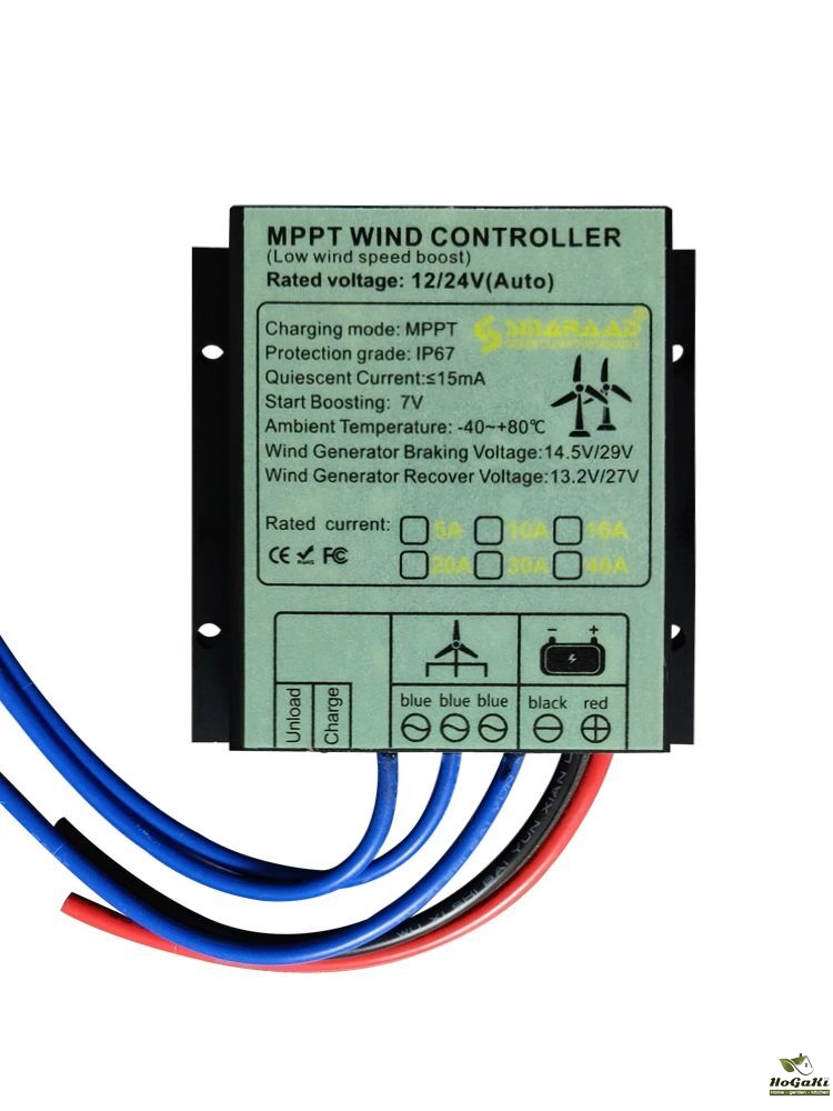 This controller has basic control and protection functions, and provides low-voltage charging function. The battery can be charged in low-speed wind. Equipped with voltage regulation function, rated voltage 12/24/48V, maximum allowable input current 60A