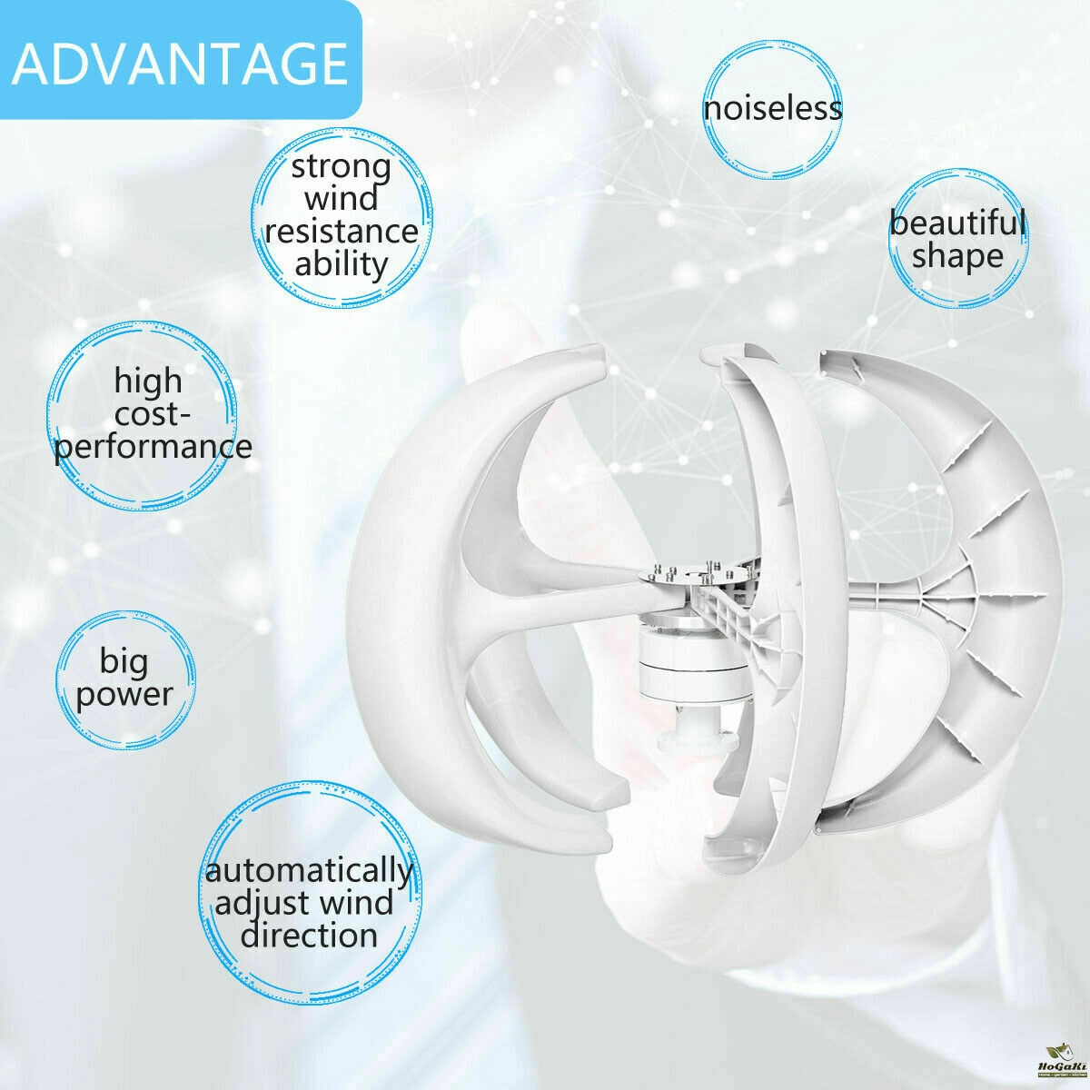 4. Small ,light ,stable and safely, special control principle expended the wind speed to 2.5 ~ 25m/s, utilizes wind resource effectively and obtains a higher power generation.