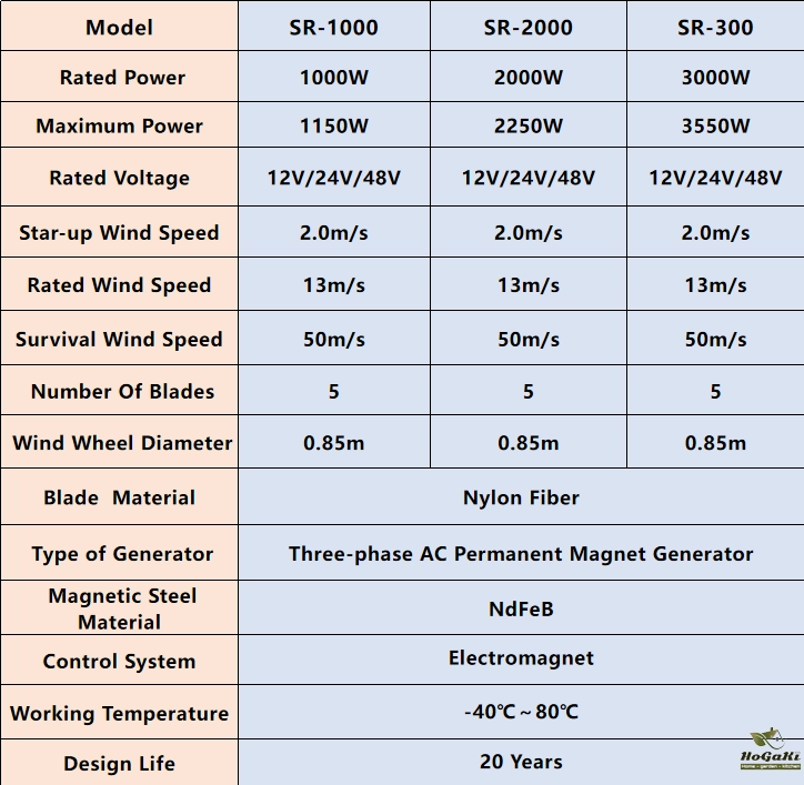 2.3 blades with curved design,utilizes wind resource effectively and obtains a higher power generation