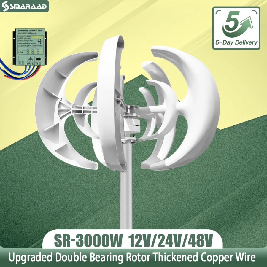 3000W Vertical Wind Turbine 12V 24V 48V Small Windmill Free Energy 220V Household Farm Sent To MPPT Controller