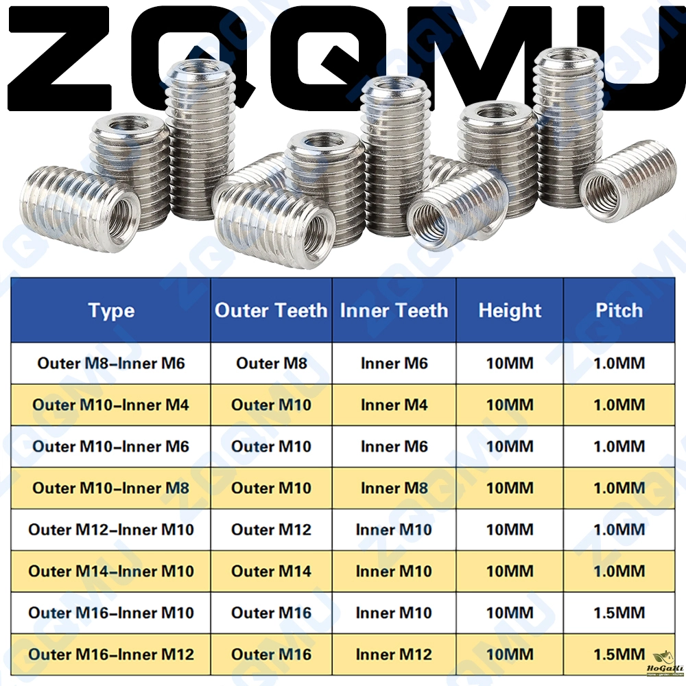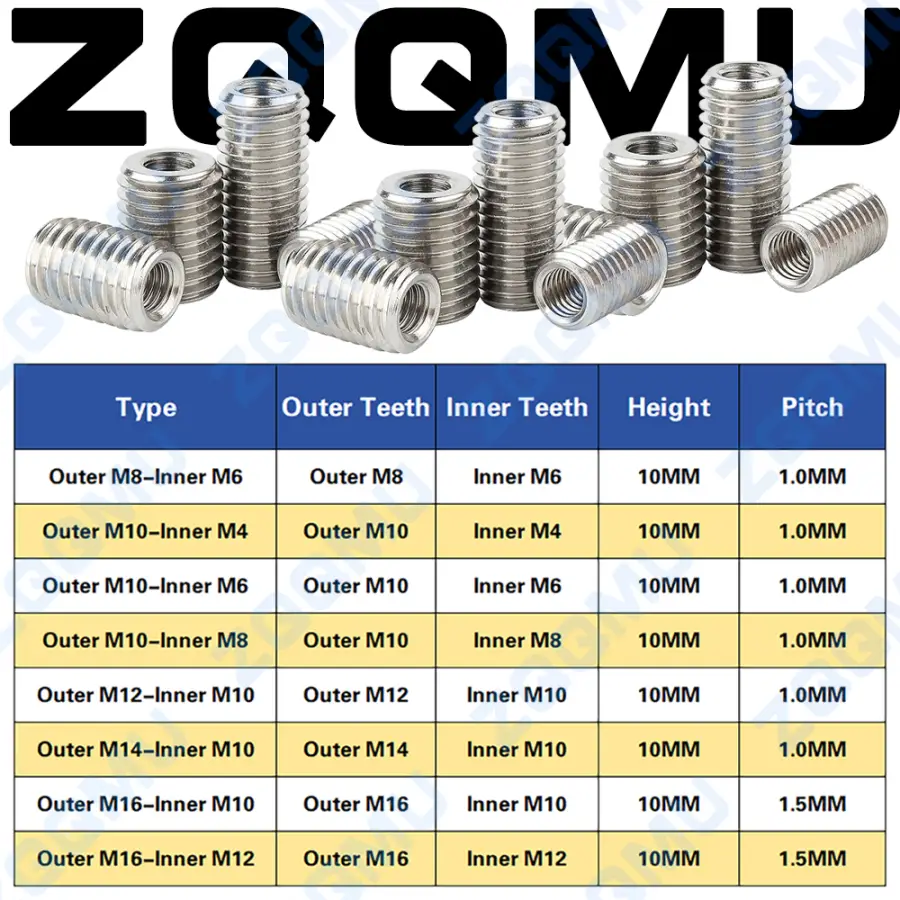 304 Stainless Steel M4 M6 M8 M10 M12 Inside Outside Thread Slotted For Screw Wire Thread Insert Sleeve Conversion Nut Coupler