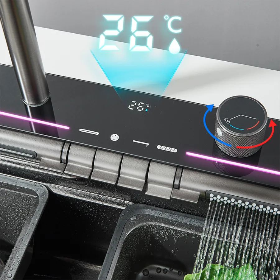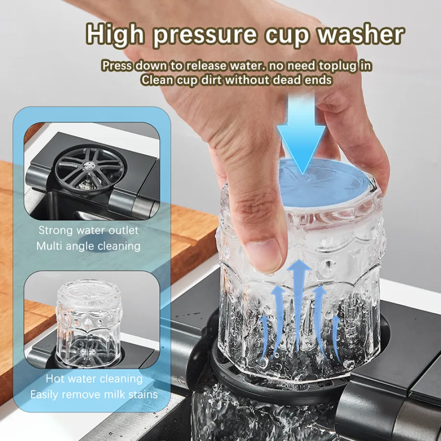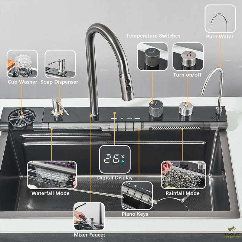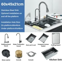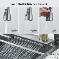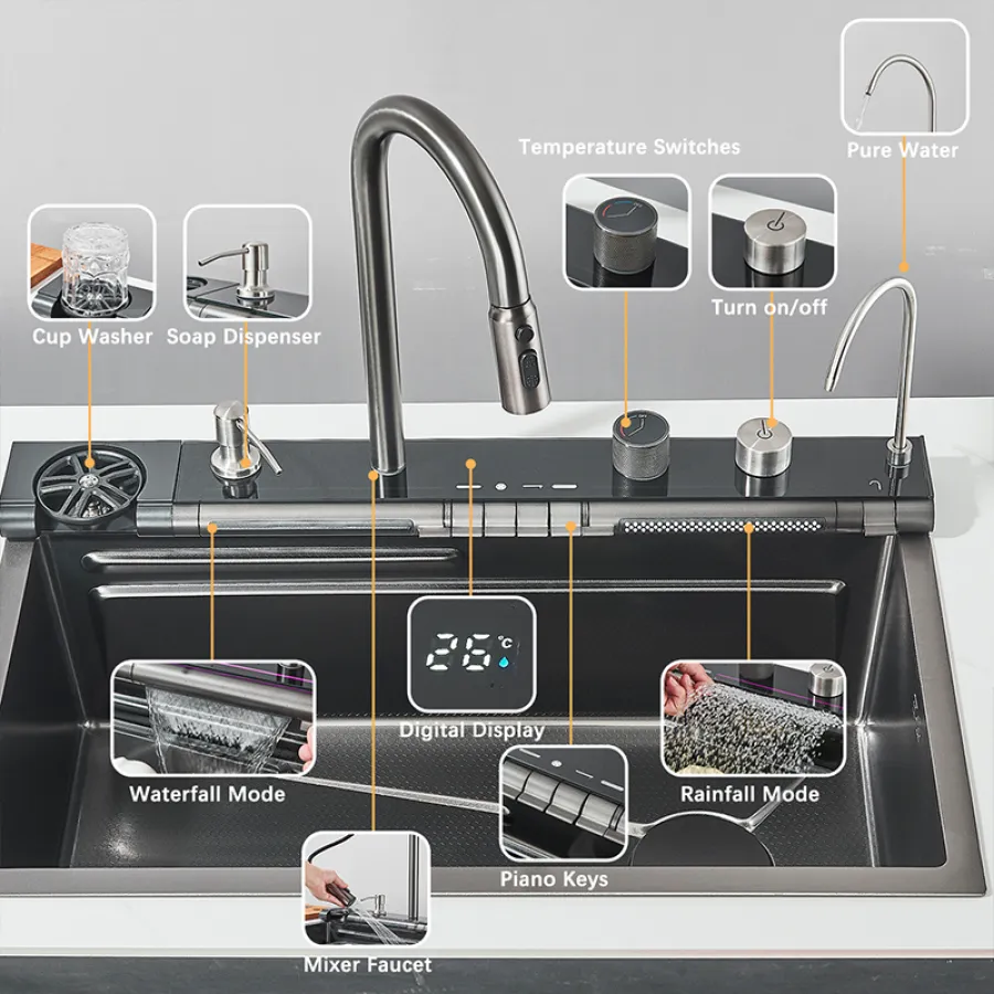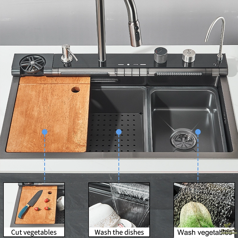 304 Stainless Steel Waterfall Kitchen Sink Sink Large Single basin With Large Single Slot Sink Above Counter With Cup Disher