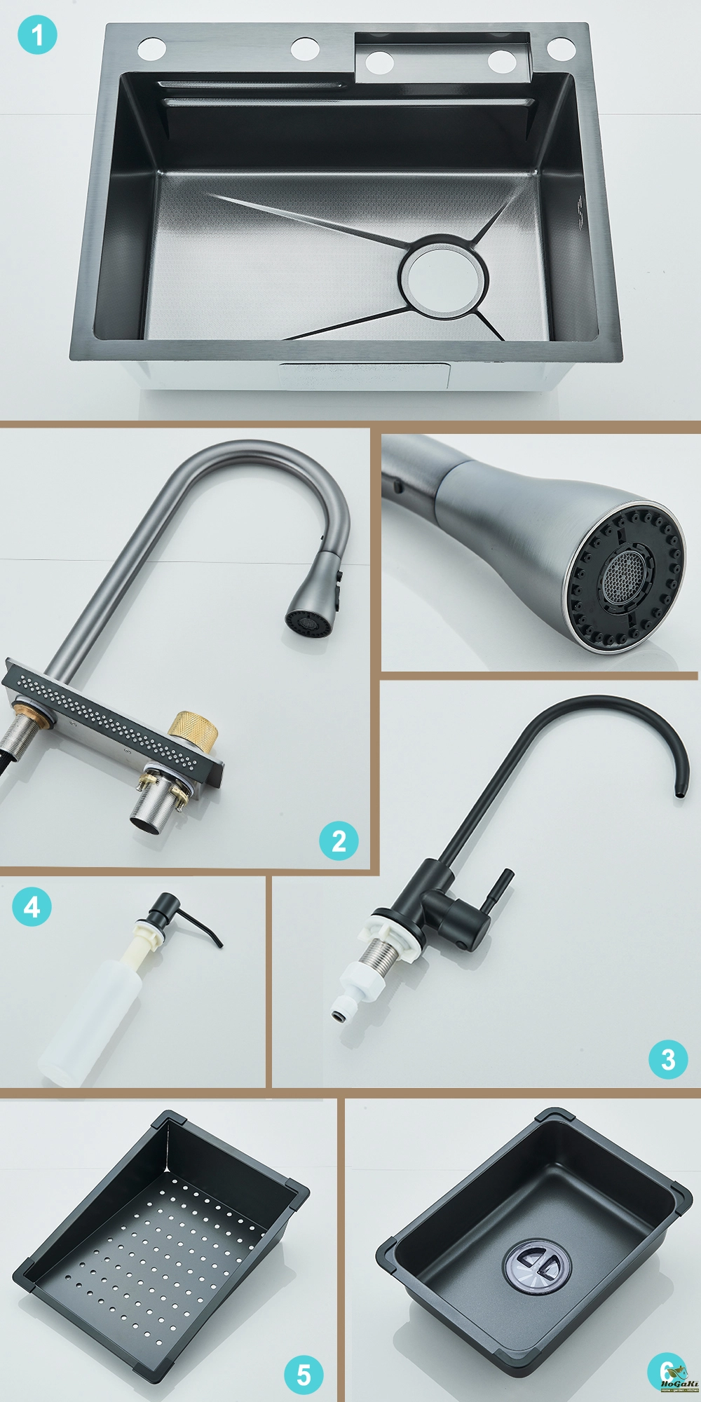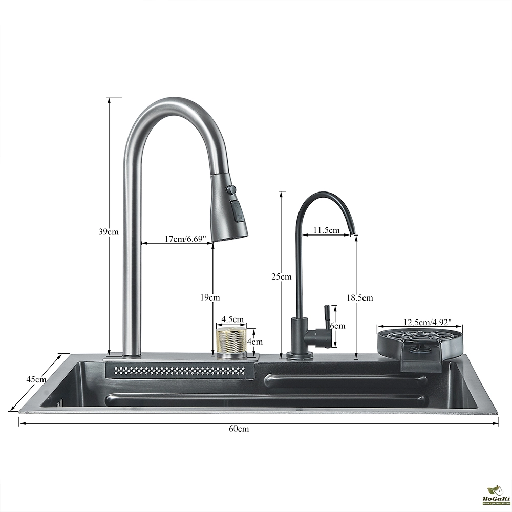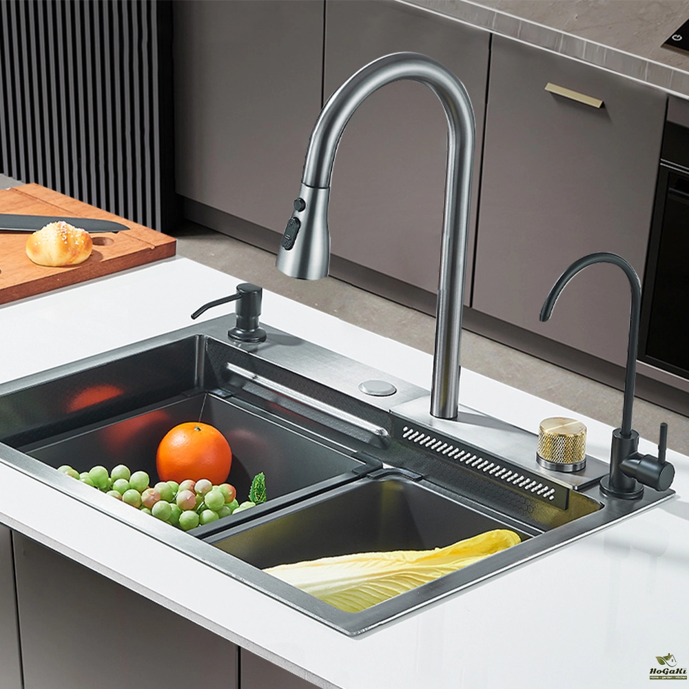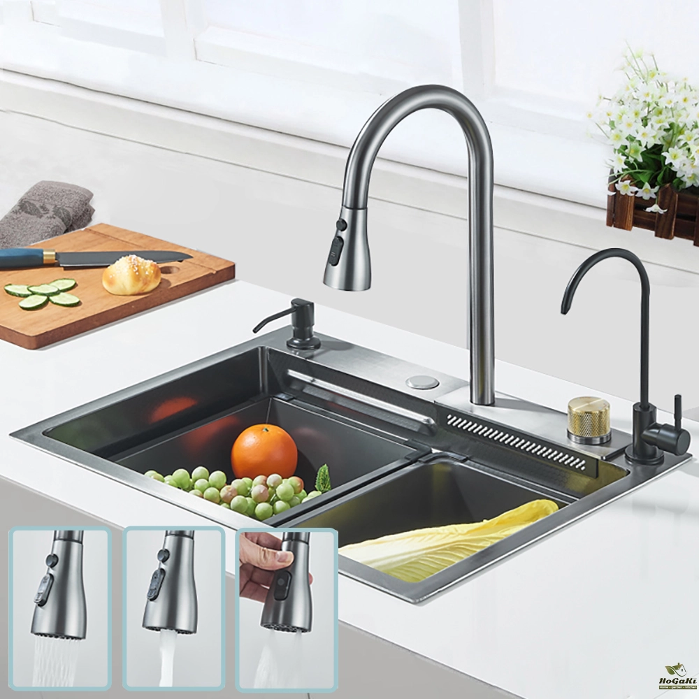 Gold Multifunctional Kitchen Waterfall Sink Digital Display Large Single Sink Dish Basin Sink 304 Stainless Steel