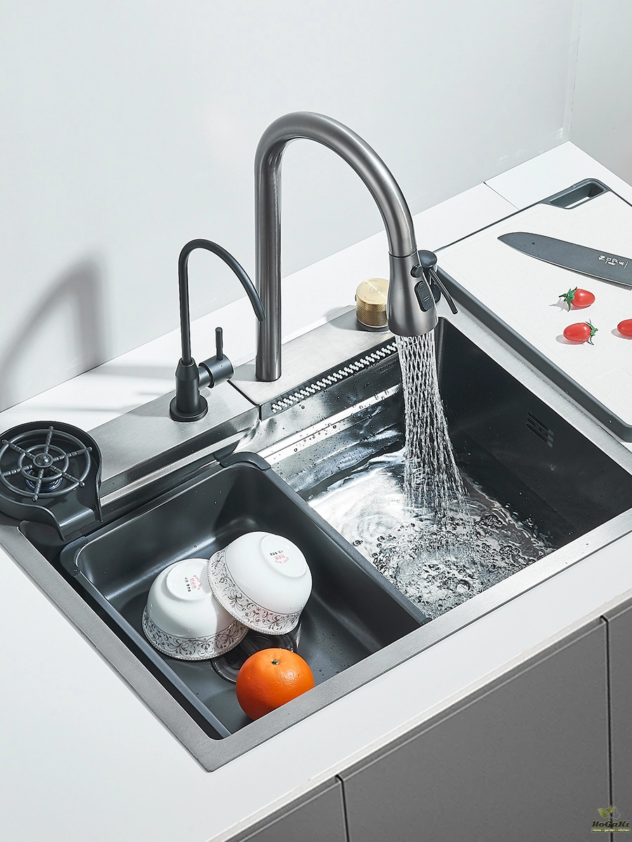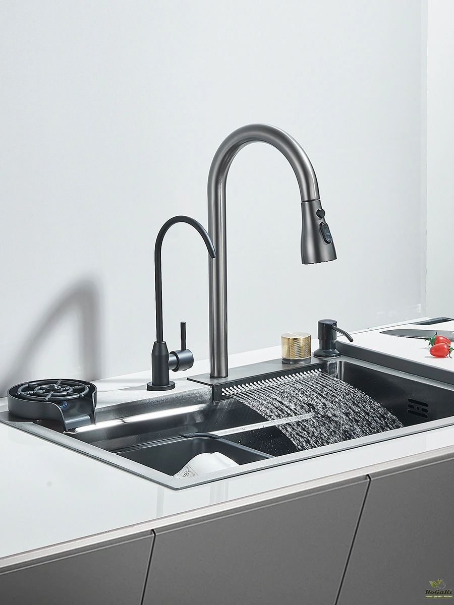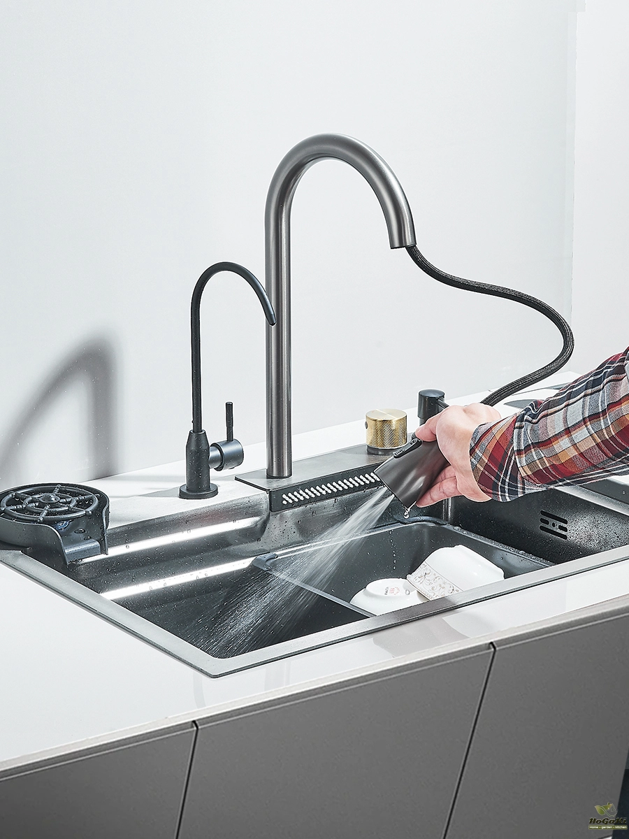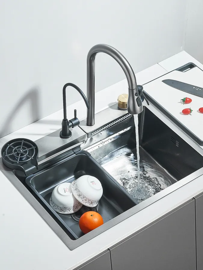 Waterfall Large Single Sink Waterfall Kitchen Wash Vegetable Washbasin Apartment CoffeeStainless Steel Household