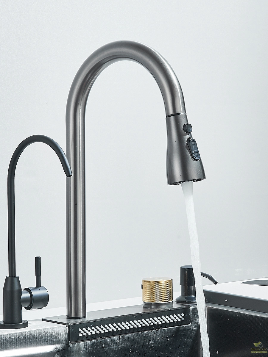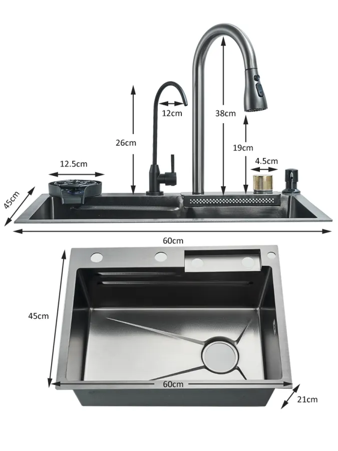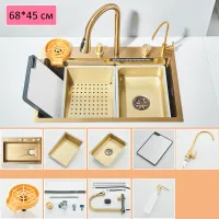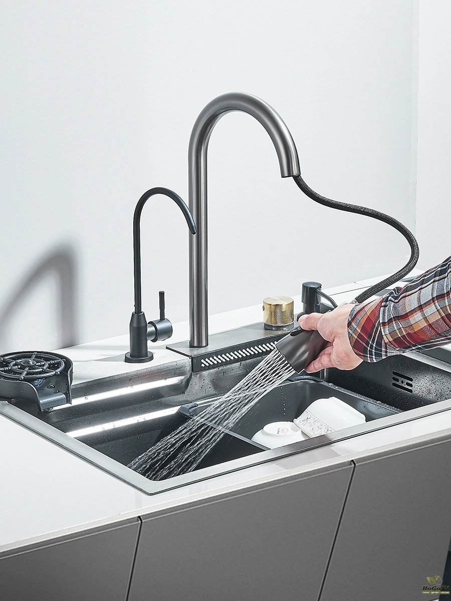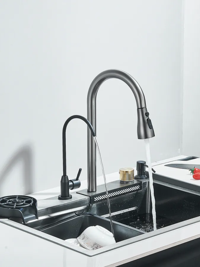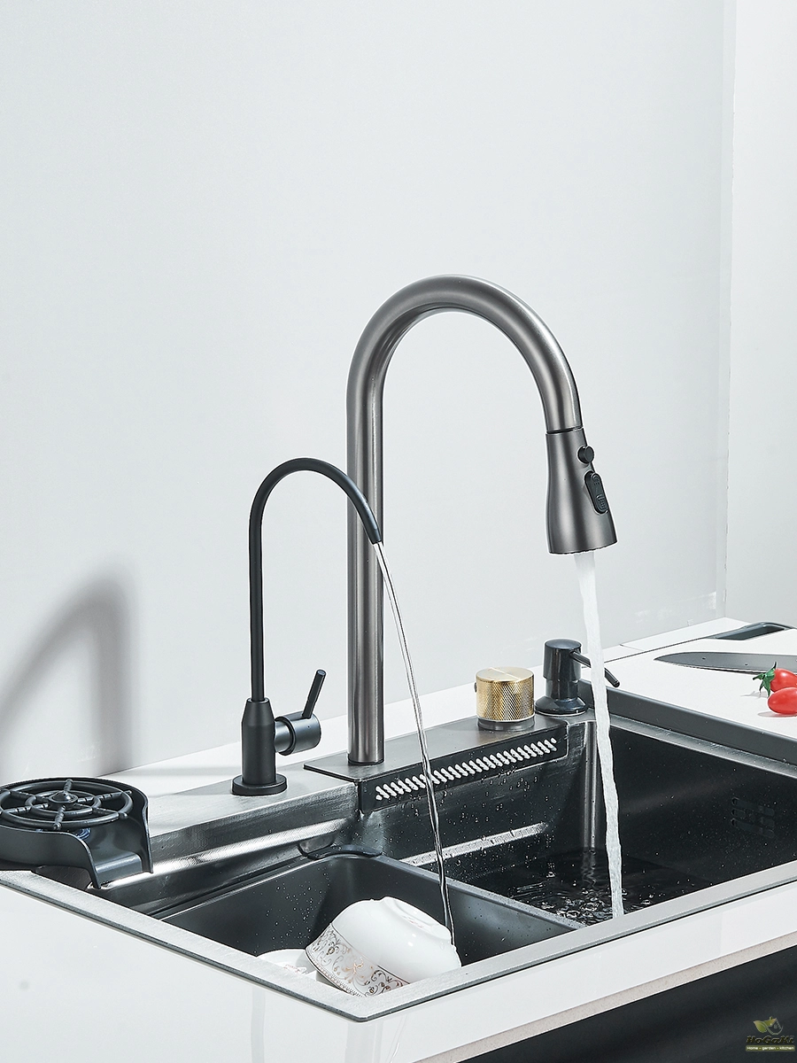 Waterfall Large Single Sink Waterfall Kitchen Wash Vegetable Washbasin Apartment CoffeeStainless Steel Household