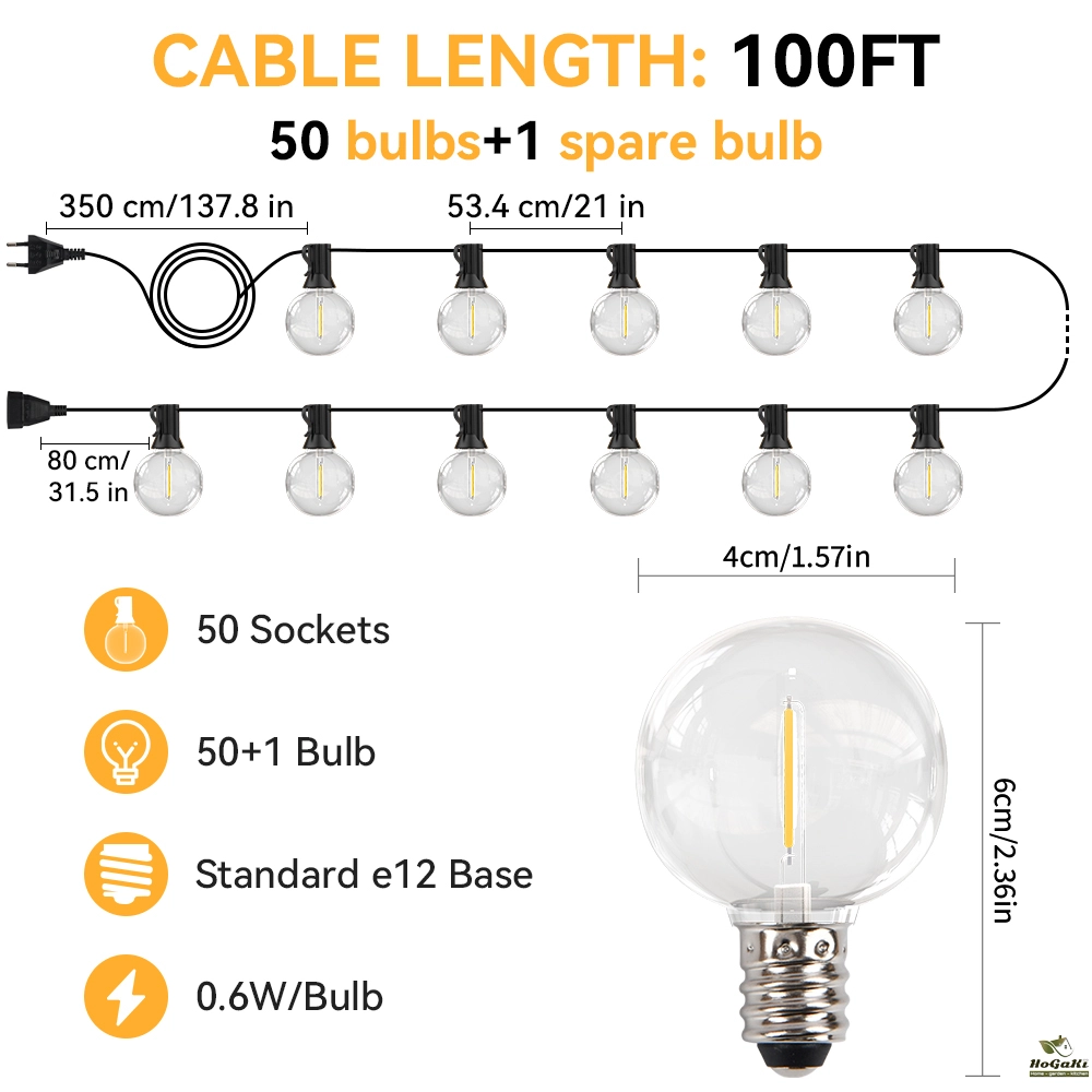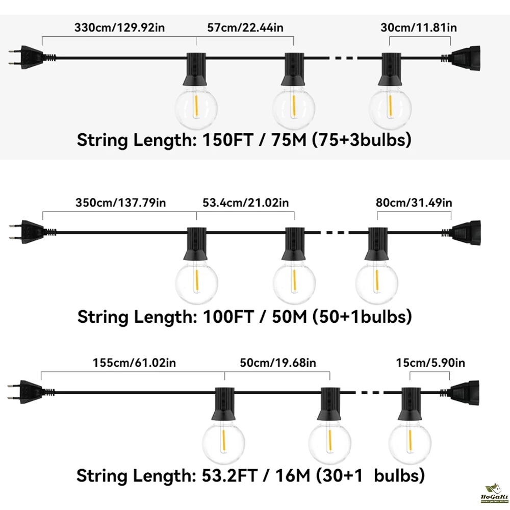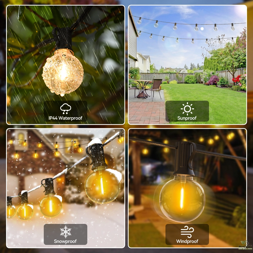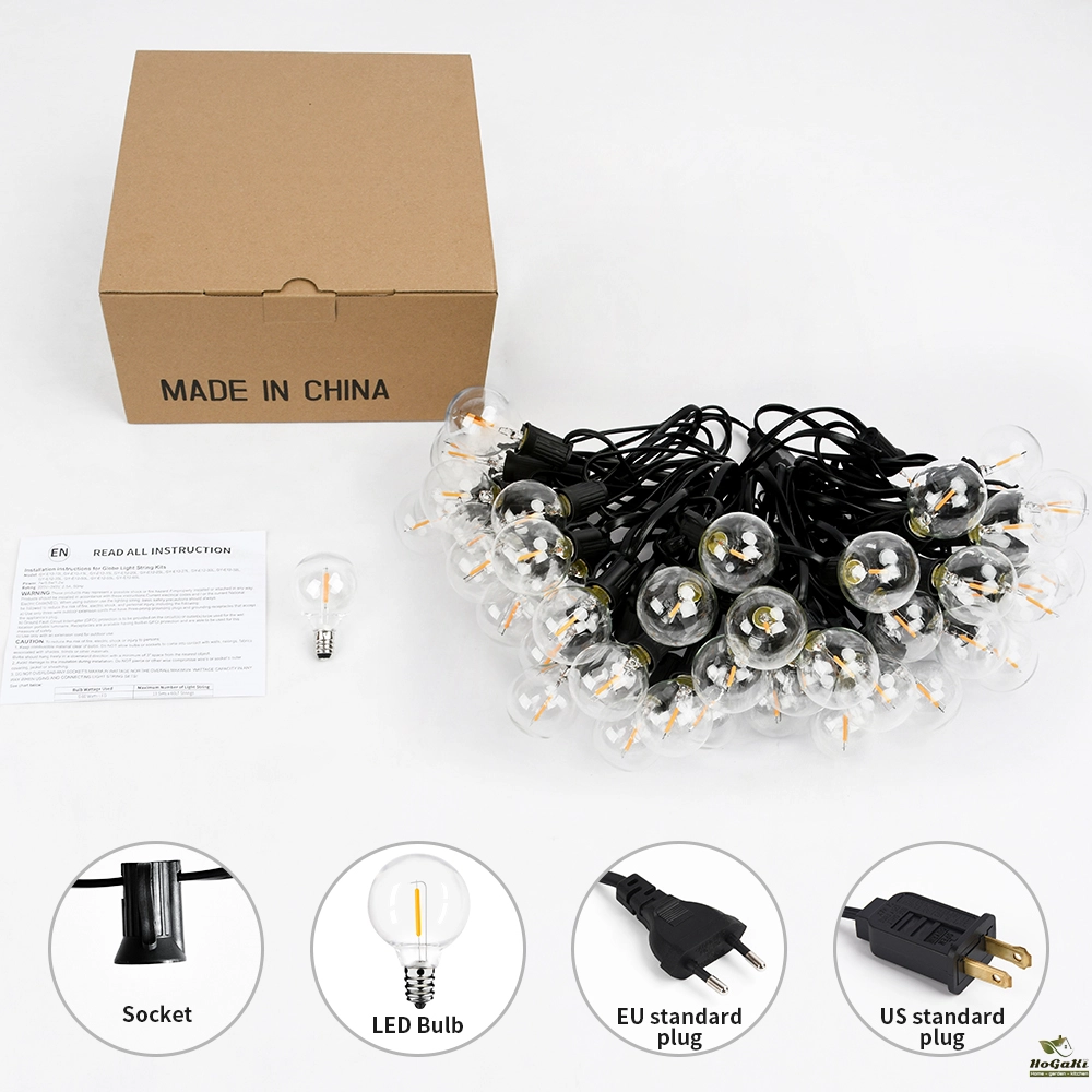 G40 Outdoor String Light Vintage Amber Glass Led Bulb Dimmable IP44 Waterproof Home Patio Decor Connectable Garland Fairy Light