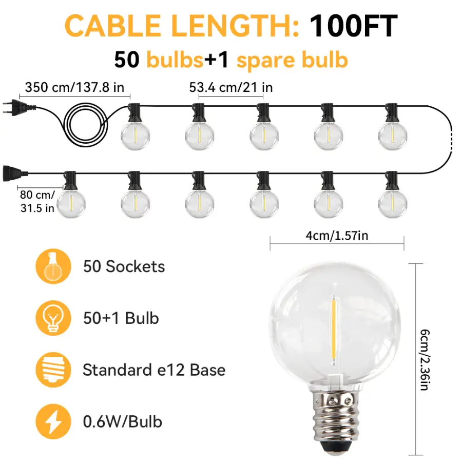 3.Energy saving: With Led bulb 0.6W string lights provide you enough brightness but less energy consumption.
