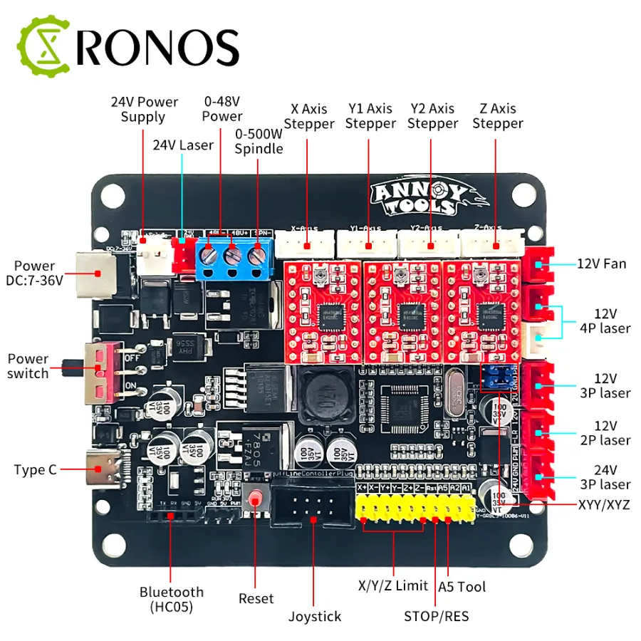 Integrated 3 A4988/8825 drivers, directly connect to four wire stepper motor.