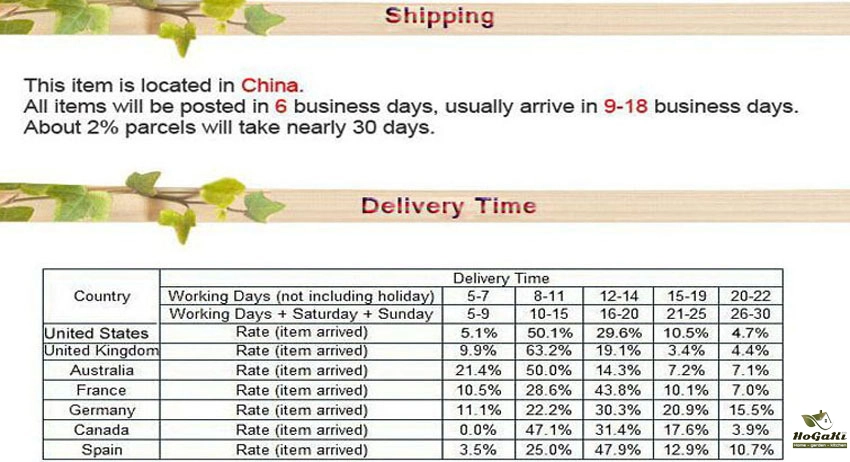 If you can't find the estimated delivery time on the product detail page, you can look at the following table for reference.