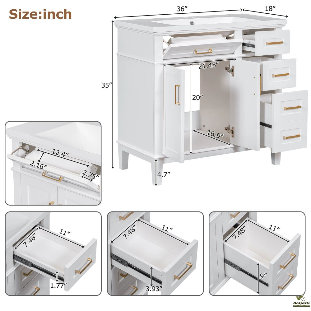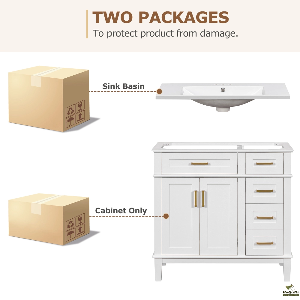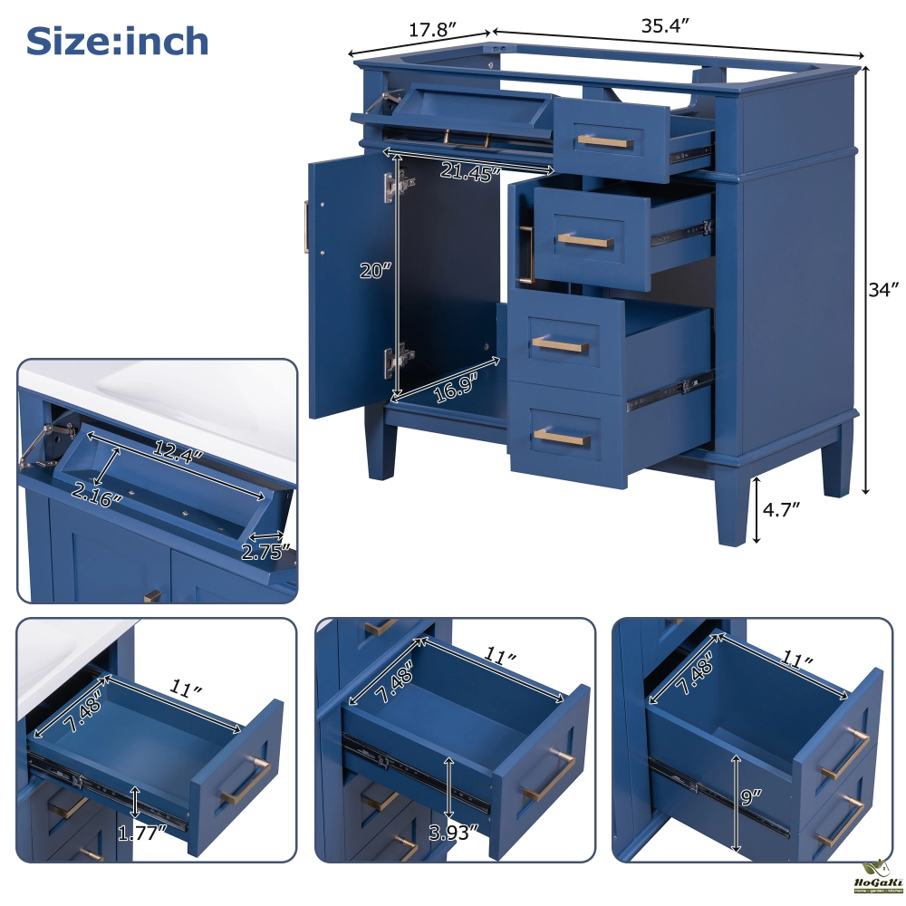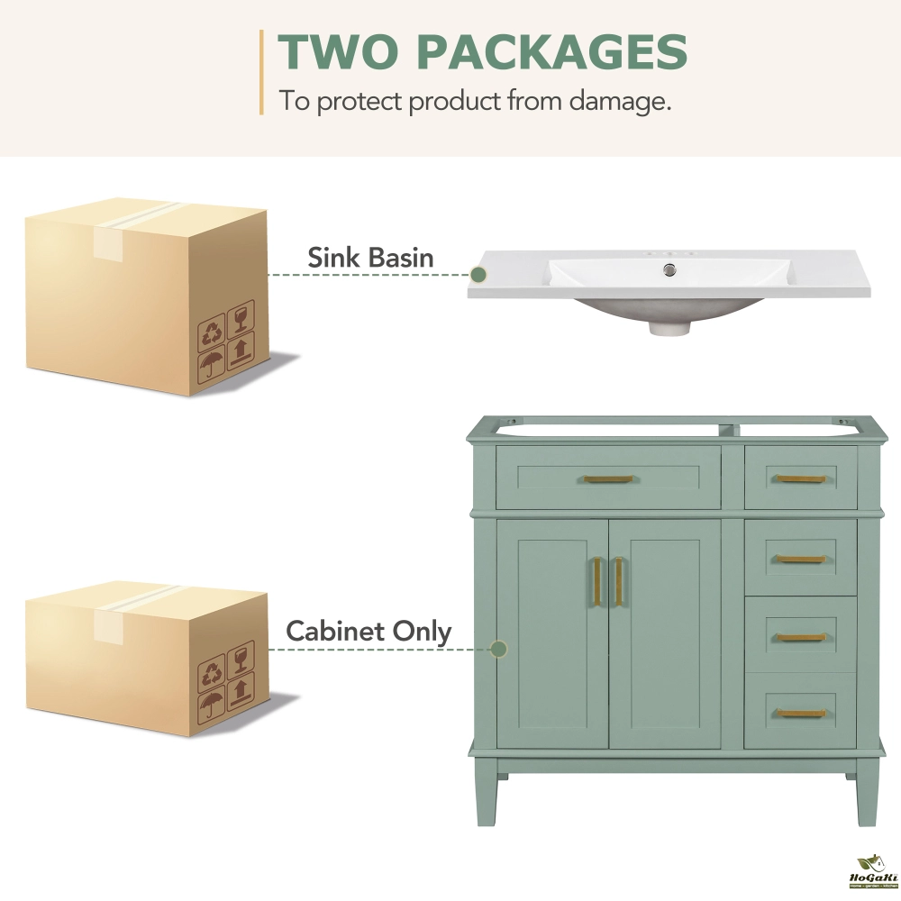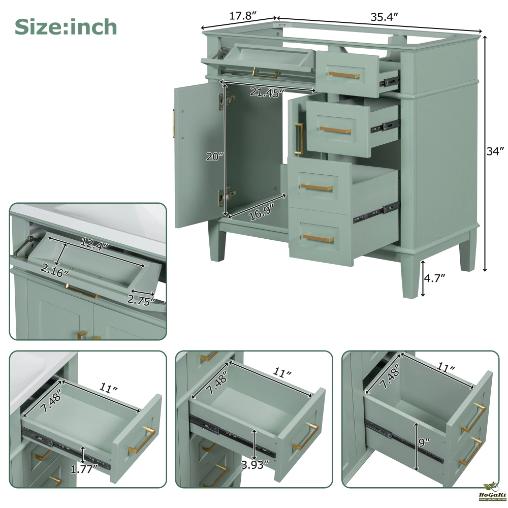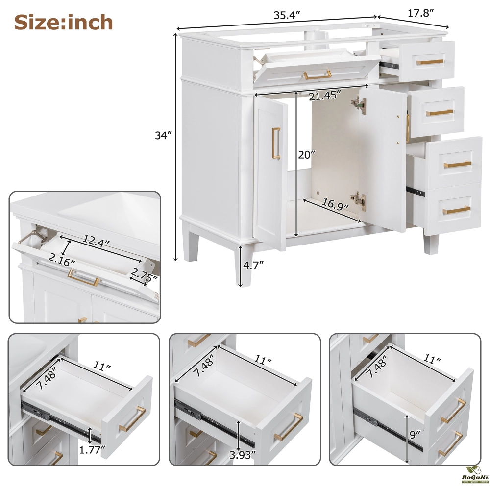 | Vanity: | 35.4"W*17.8"D*34"H, 70.55 lbs |