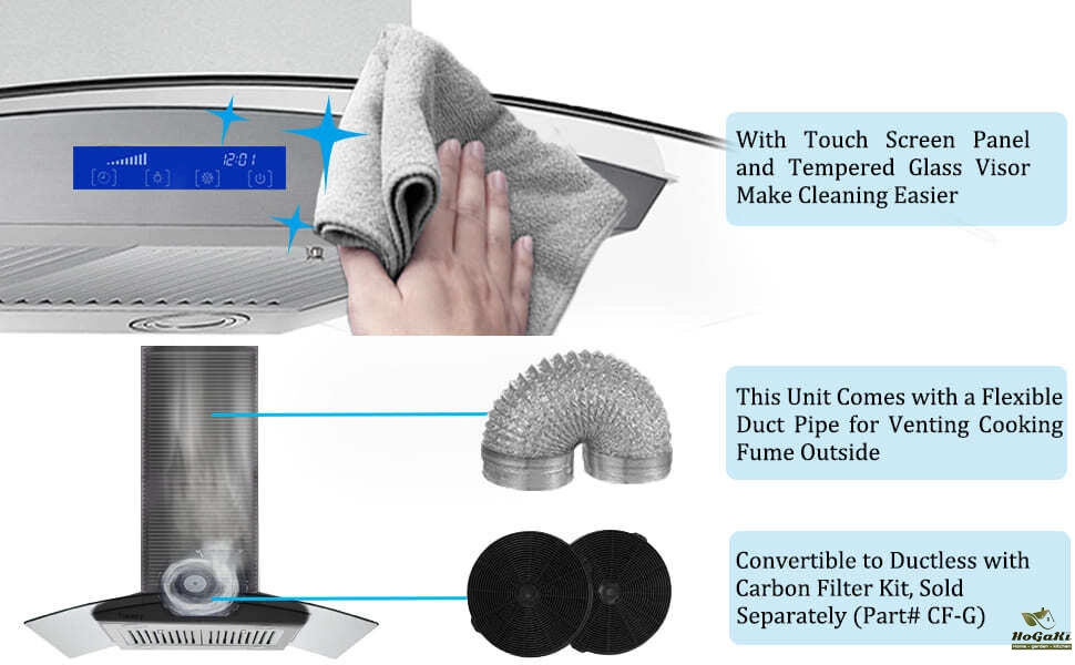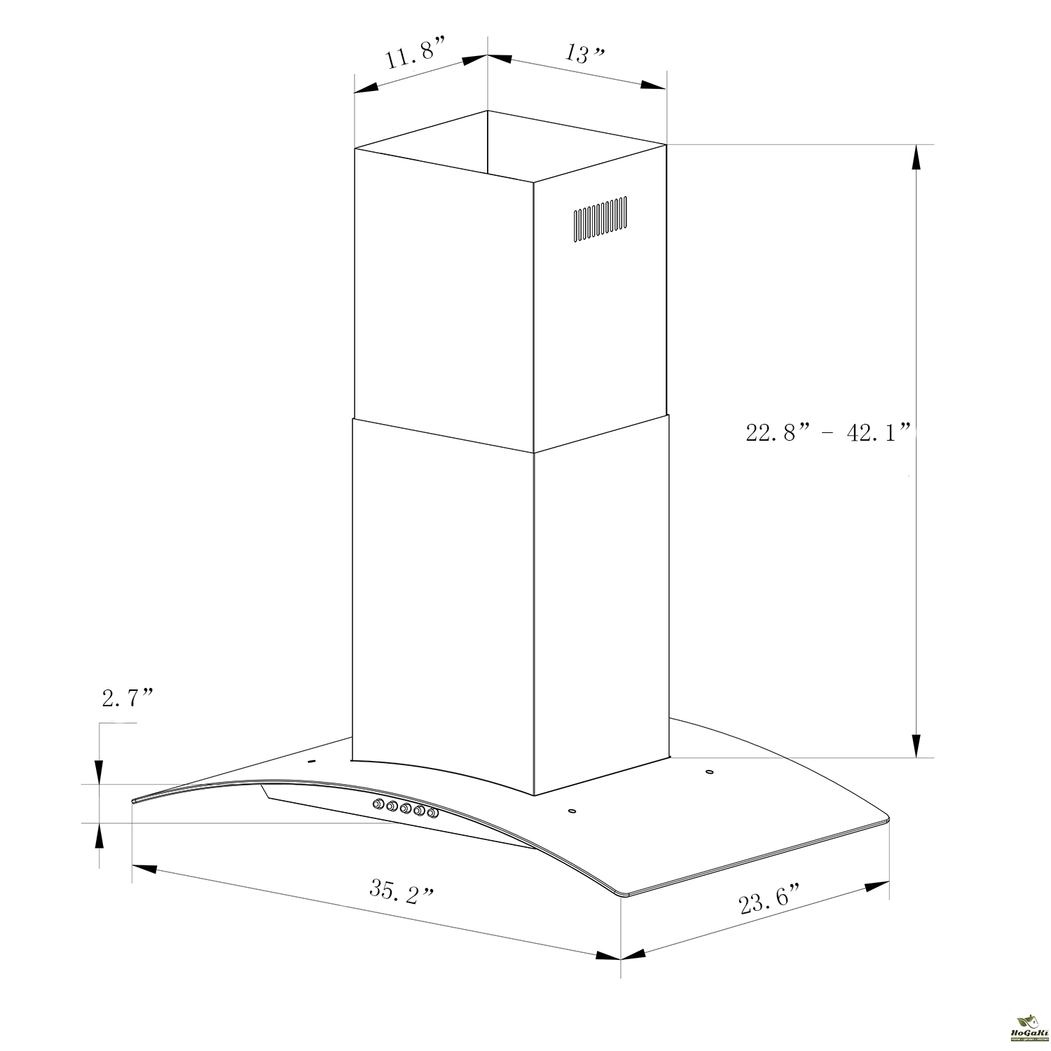 Easy installation:Cooker hood dimensions is 35.2"(W)x 23.6"(L)x