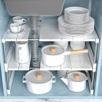 Stackable Storage Rack Wardrobe Layered Partition Rack Closet Sorting Shelves Telescopic Sink Holder Wardrobe Clothing Organizer