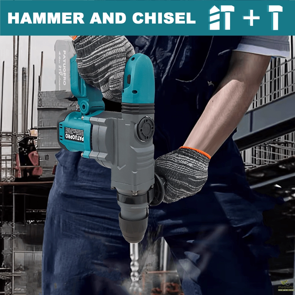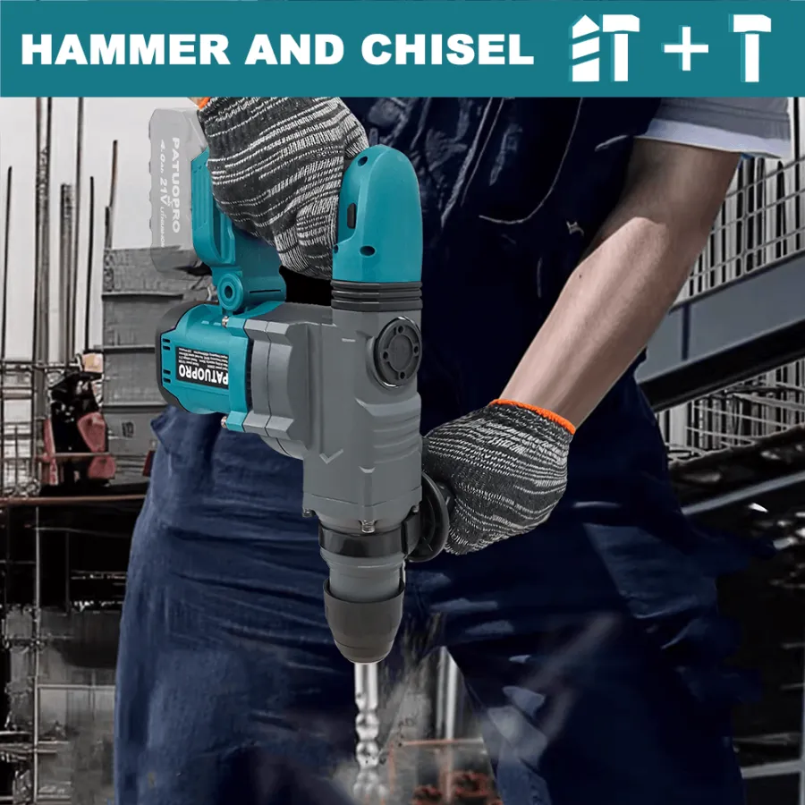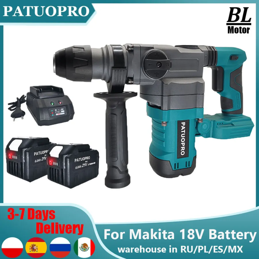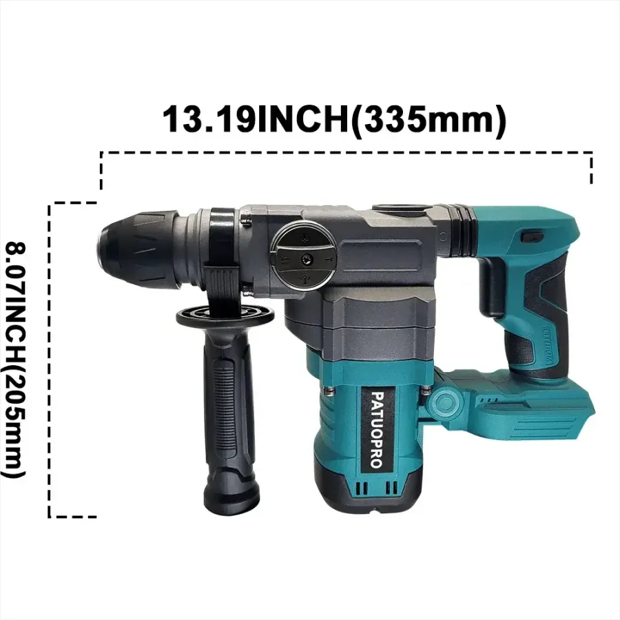 PATUOPRO 2280W Brushless 2-Mode Rotory Electric Hammer Handheld Impact Hammer Drill Fit Concrete Wood For Makita 18V Battery