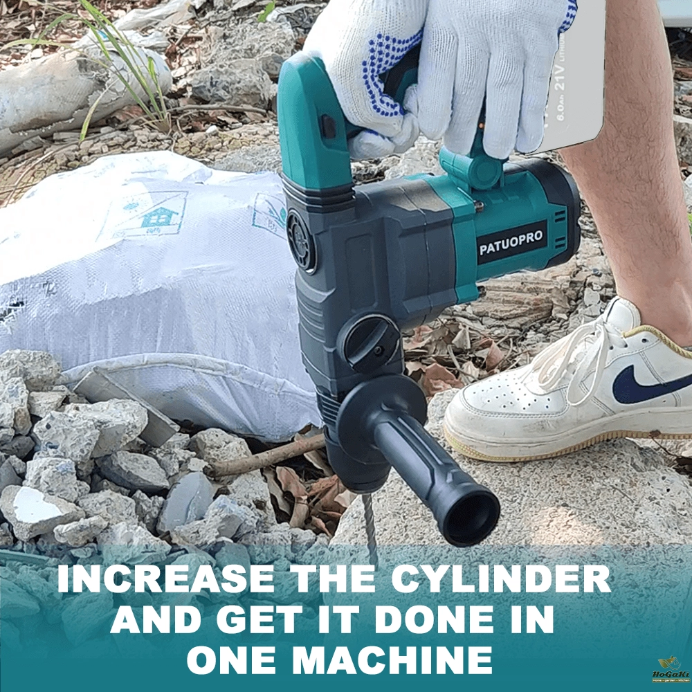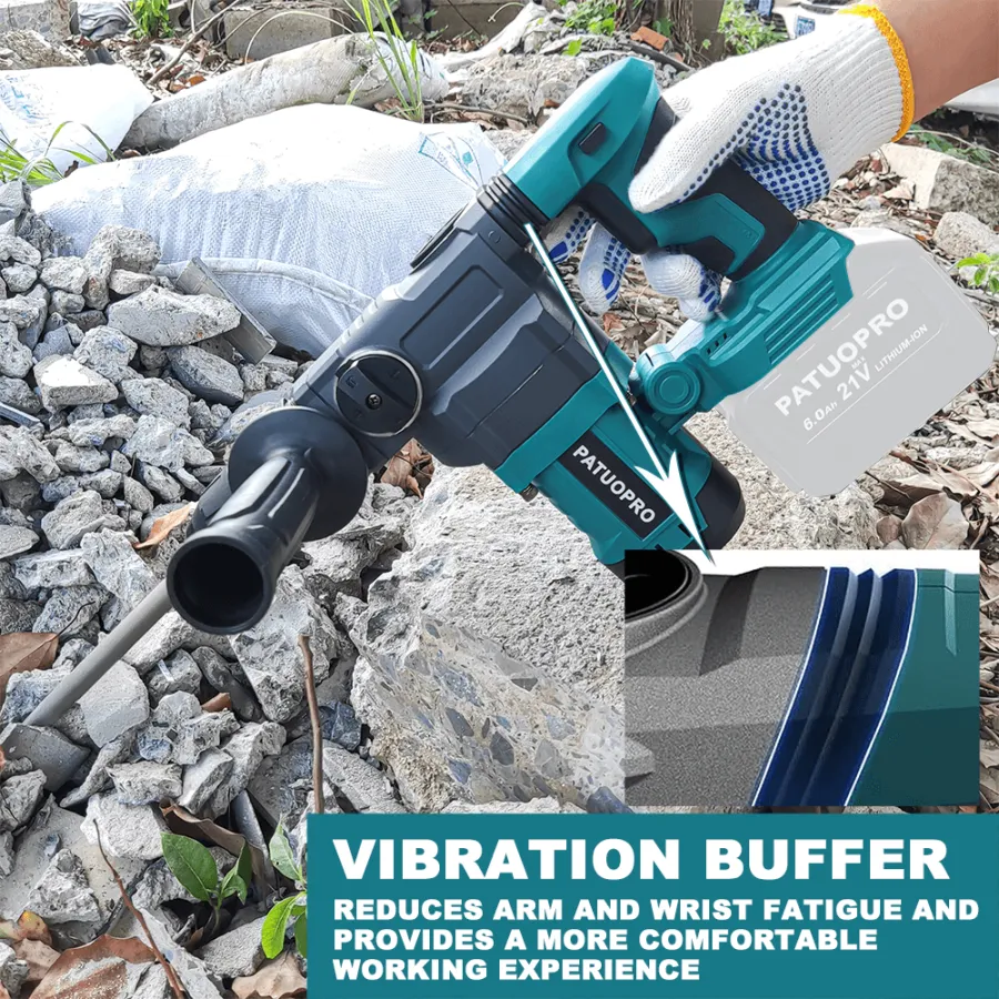 4.【Intimate and Humanized Design】:For your safety and comfort, we designed a safety clutch protection device for the electric hammer to protect your wrist from high torque forces. 360° adjustable handle to easily cope with different working scenarios. Our upgraded double-layer anti-shock system effectively reduces vibration and minimizes fatigue. The PU soft handle prevents slipping and ensures a comfortable, secure hold during use.