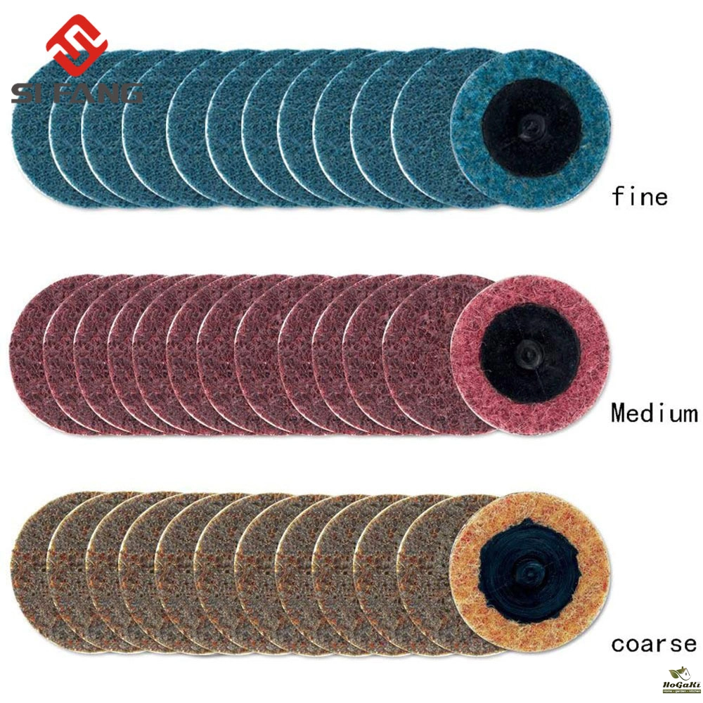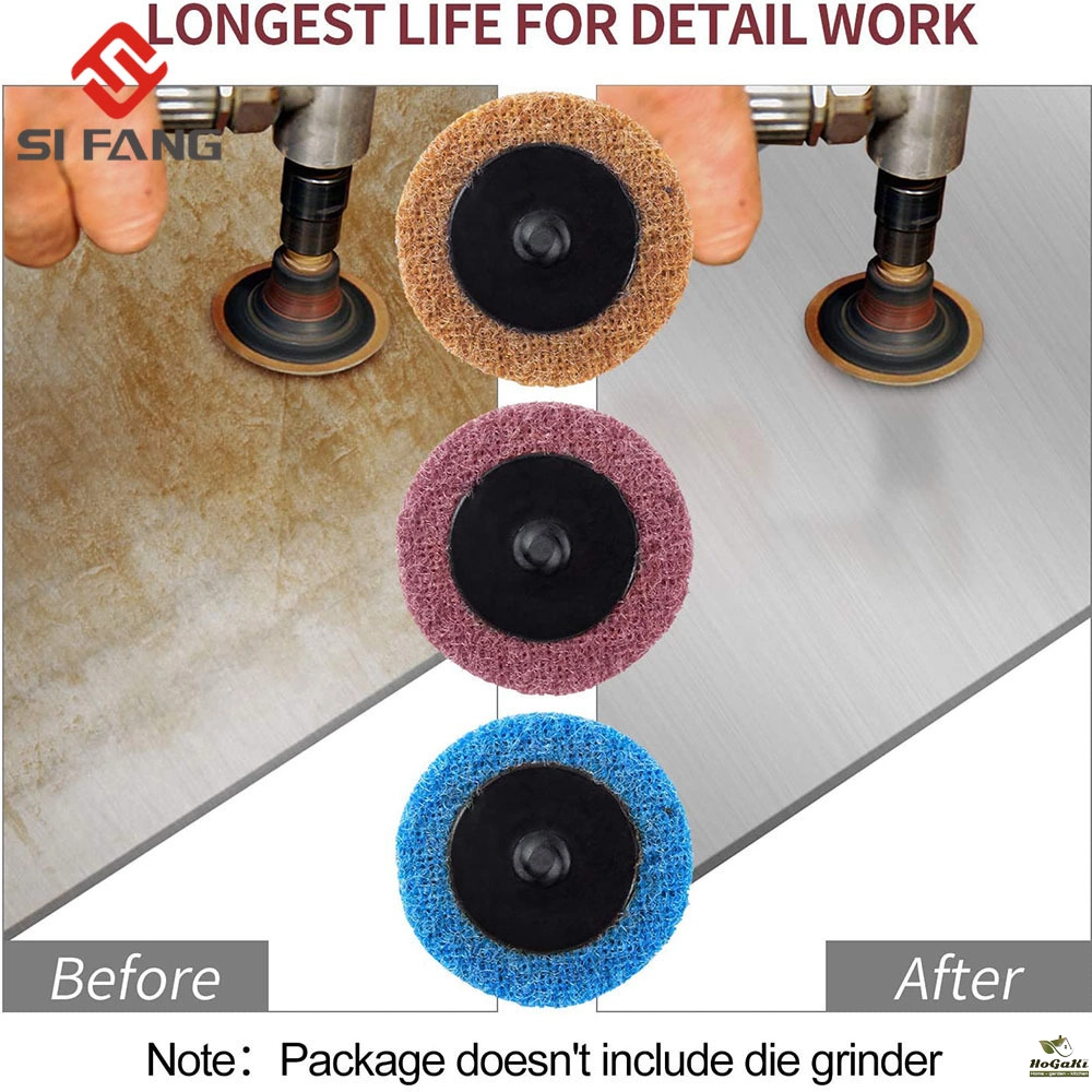 High Performance for Various Work: Come with a 1/4 inch shank roloc disc holder, 30pcs Fine/Medium/Coarse cutting abrasive discs, fits various surface conditioning and preconditioning, oil paint removal, rust removal, glue or adhesive removal, sanding, cleaning, grinding, stripping, deburring, polishing, finishing,etc.