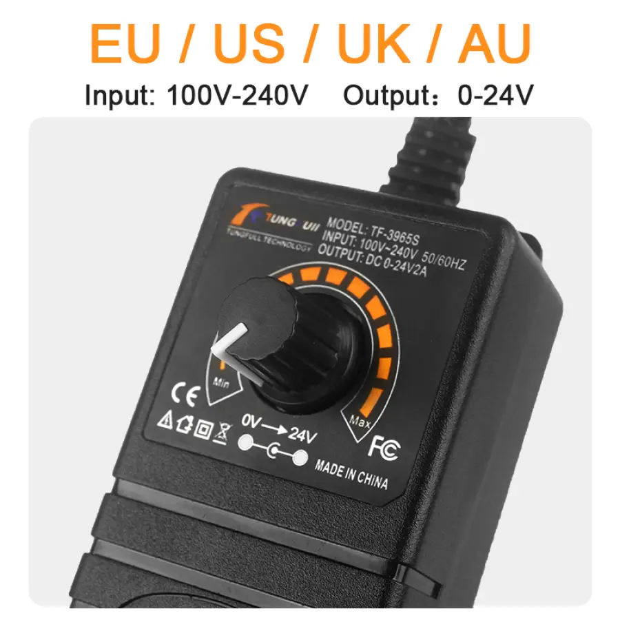 The power supply is large, input: 100-240V, output: 0-24V 2A
