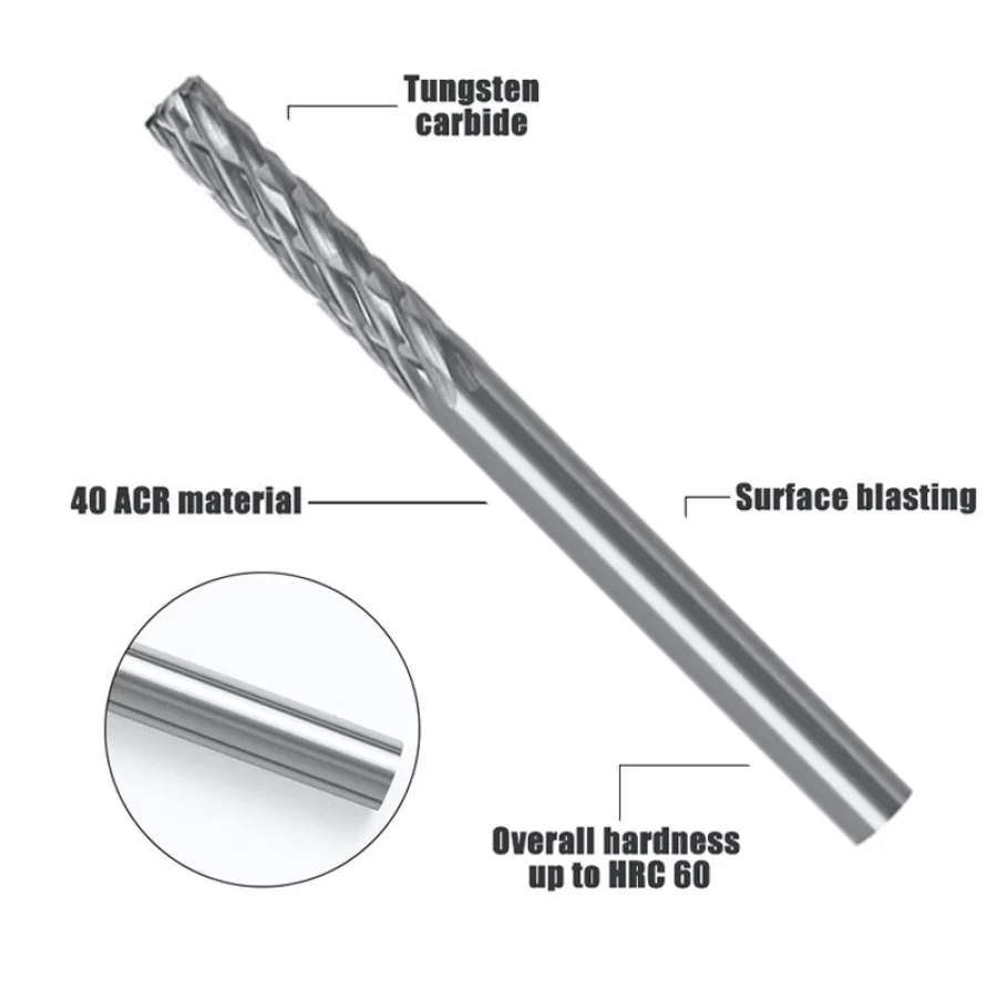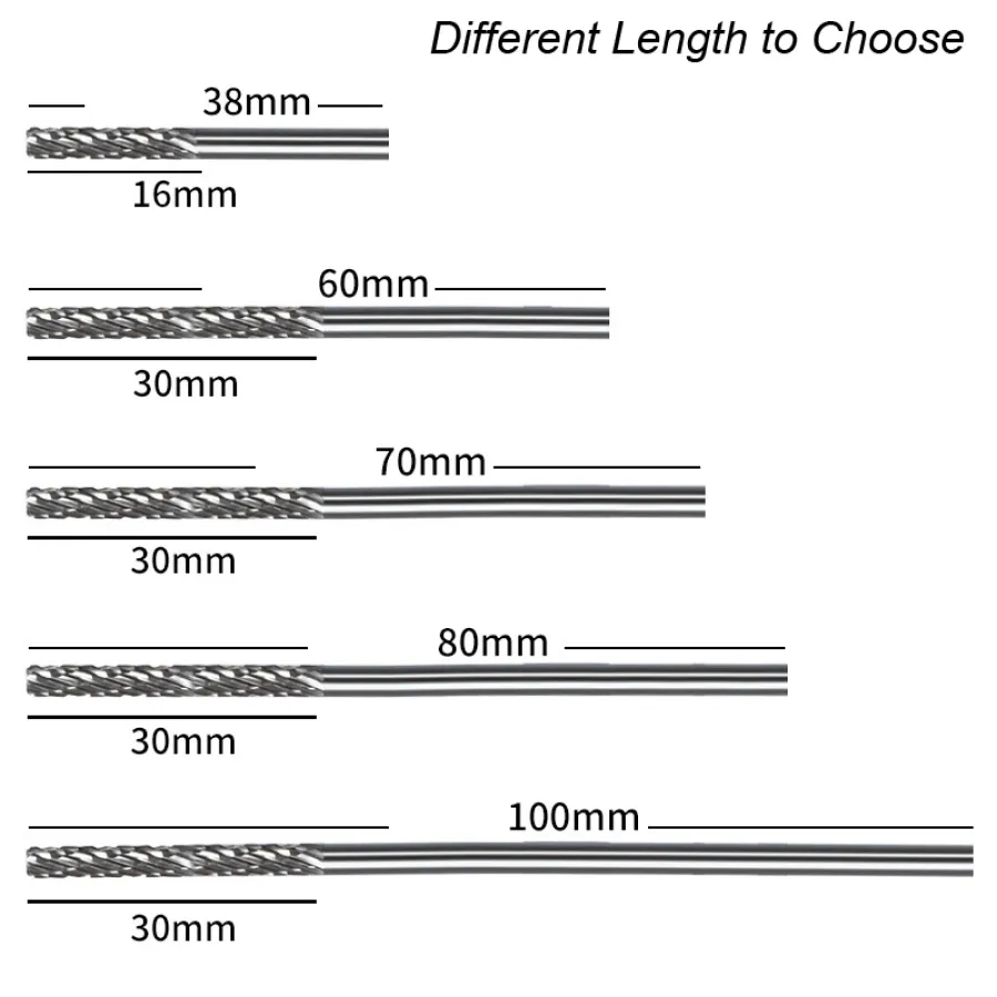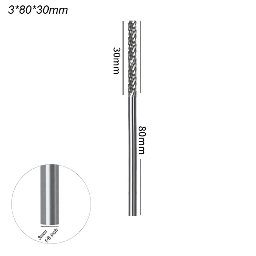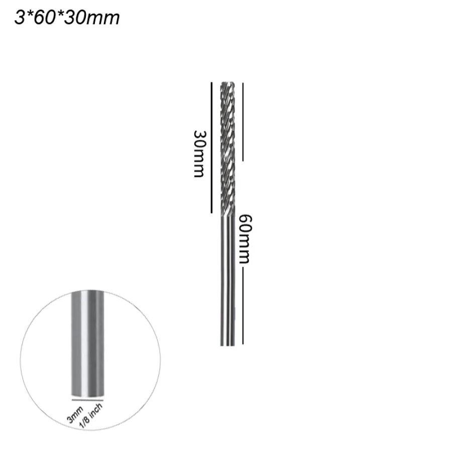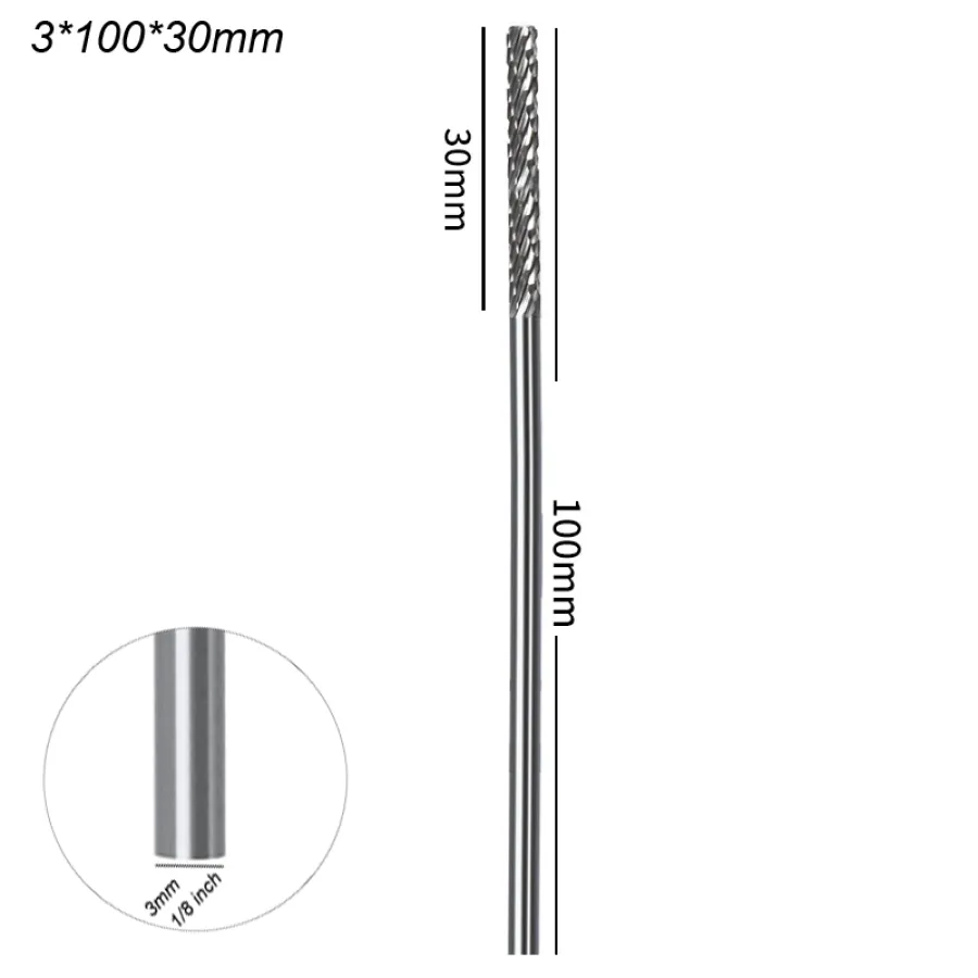 3mm 1/8 Long Shank Drawing Carbide Burs for Dremel Tool Milling Cutter Rotary Tool Burr Diamond Cut Rotary 38mm to 100mm Length