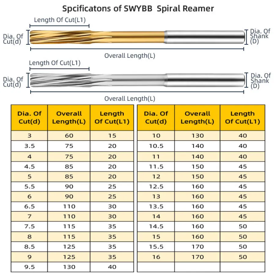 Spiral Reamer High Speed Steel CNC Machine Reamer Cobalt Containing Titanium Coated for Metal Processing High Precision H7