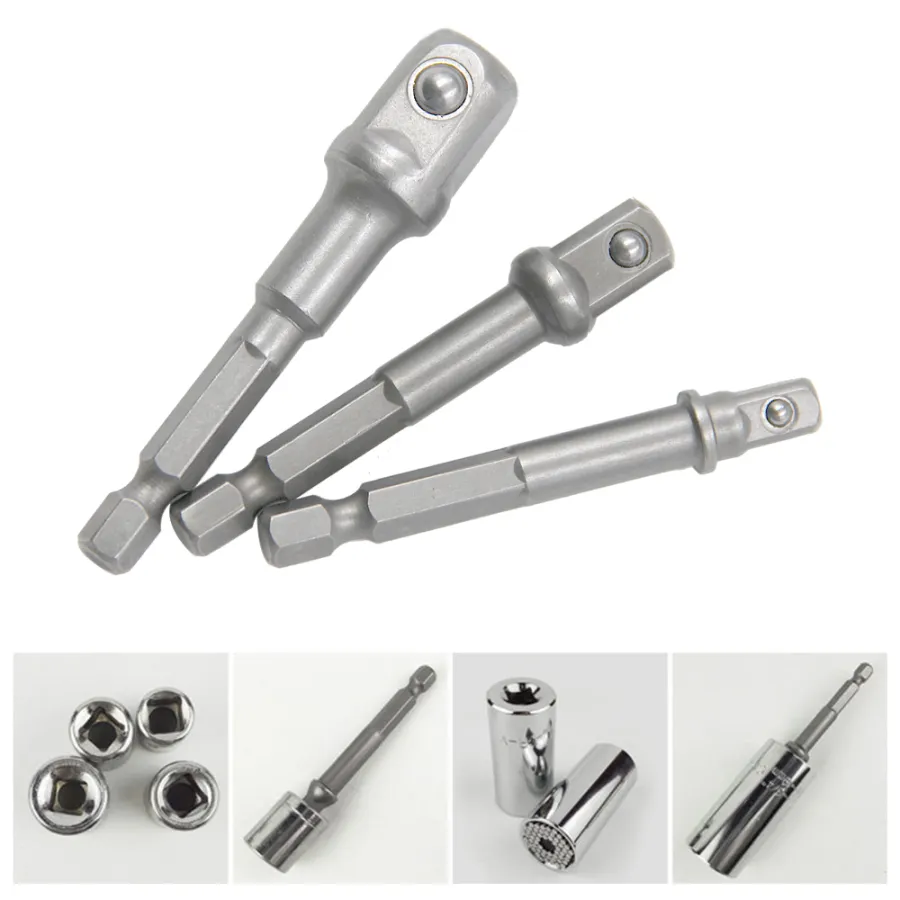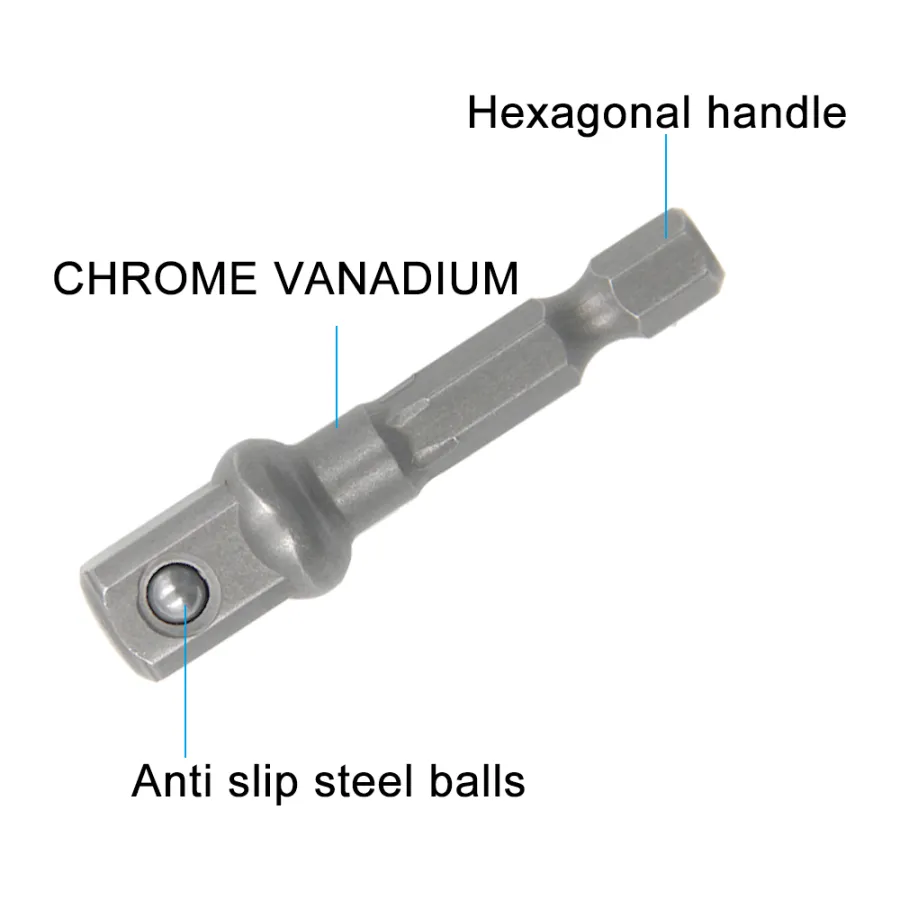 Features: Used for installation on hexagonal tools such as pneumatic screwdrivers, electric screwdrivers, pneumatic drills, electric drills, pistol drills, manual screwdrivers, etc. It can convert the original hexagonal size to square head size, and can be used for sleeve installation. It is a good accessory for conversion