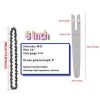 2/3/4 PCS 8 inch Metal Chainsaw Chain 1/4" Pitch 48 DL 0.043" Gauge 24 Cutters Electric Saw Kit Replacement Blades & Guide Plate