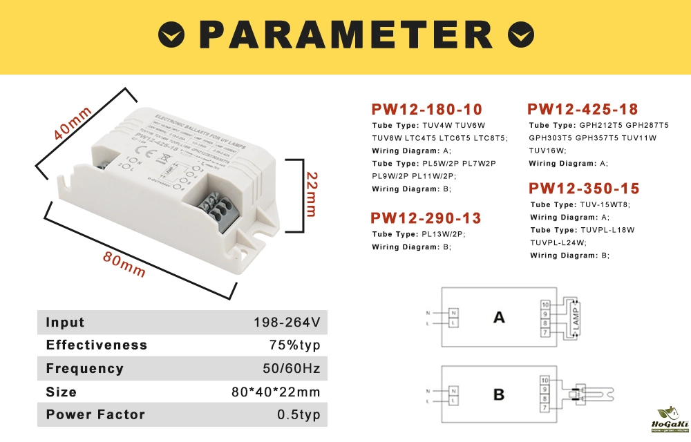 This ballast is used for ultraviolet tube, the link of the ultraviolet tube is below:
