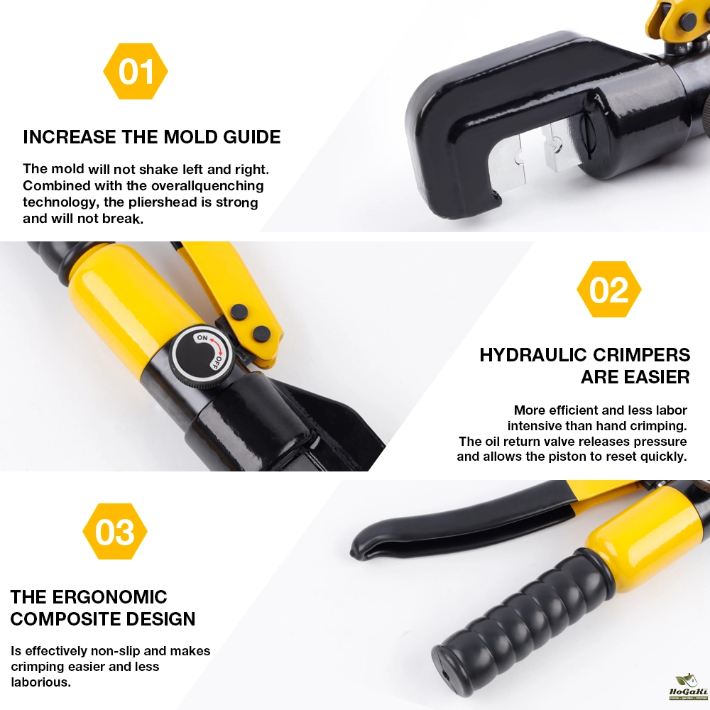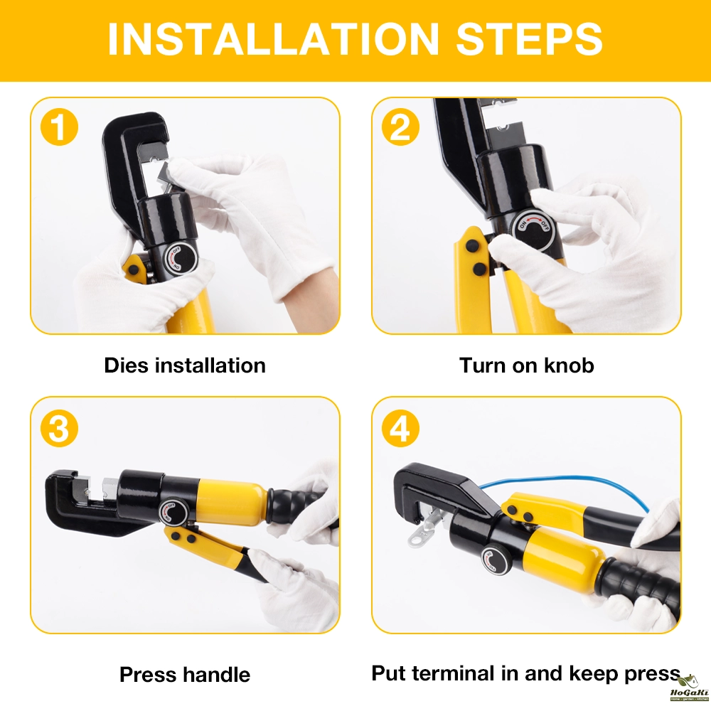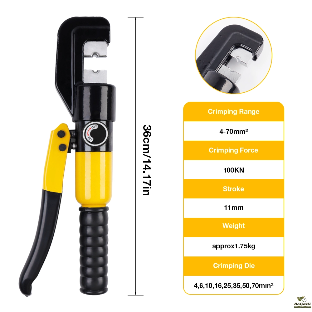 Hydraulic Cable Lug Crimper Pressure 10 T Electrical Terminal Cable Wire Tool Kit with 4/6/8/10/16/25/35/50/70mm² Die & Scissor