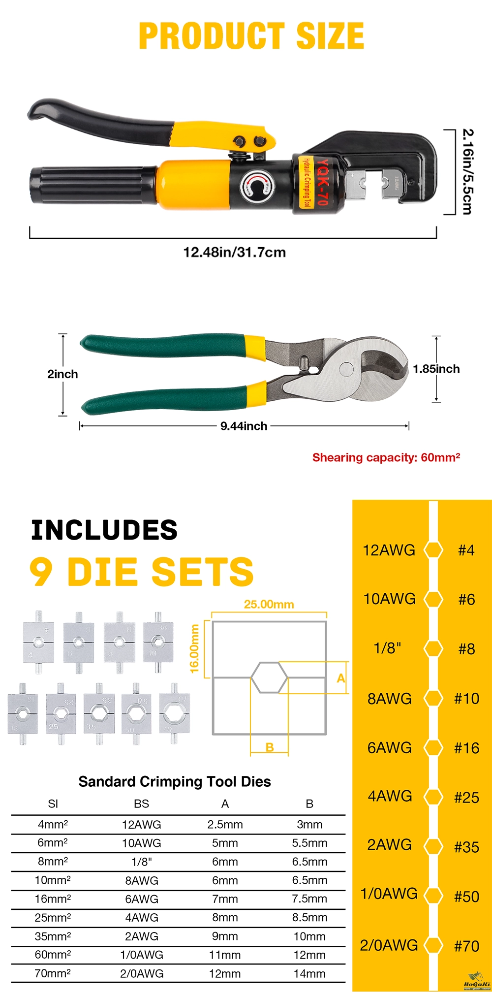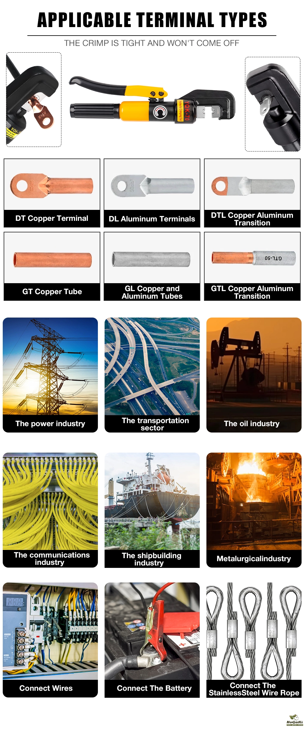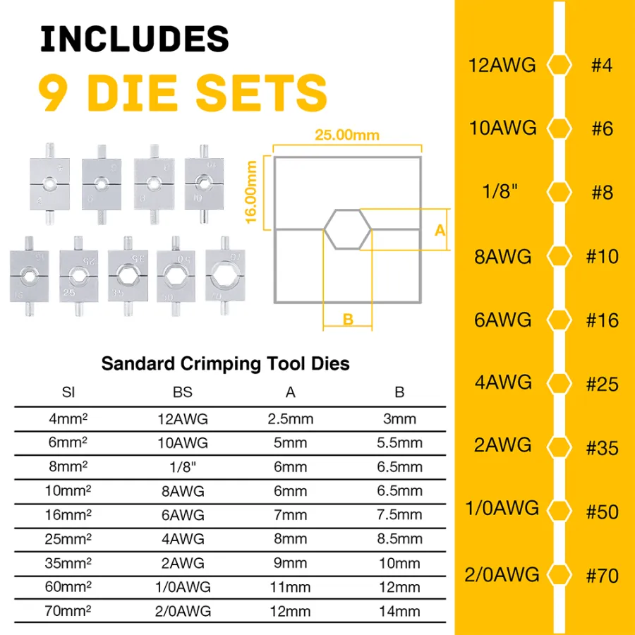 1. Terminal crimping tools are suitable for DIN, AWG, JIS specifications.