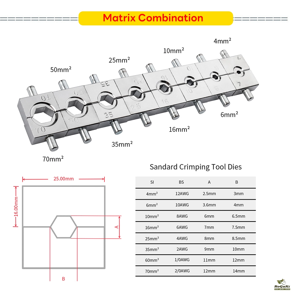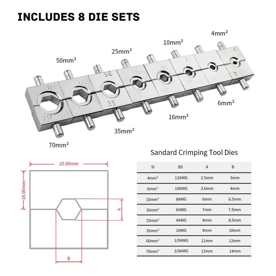 8 X Die Pairs(4/6/10/16/25/35/50/70mm²)