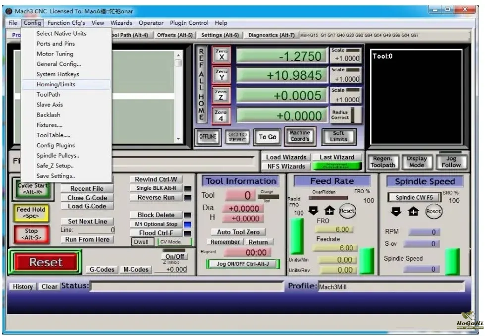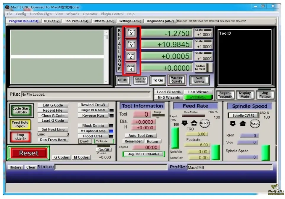 6 axis coordinates /RESET/FRO/SRO/SJR/SPINDLE are display on the screen