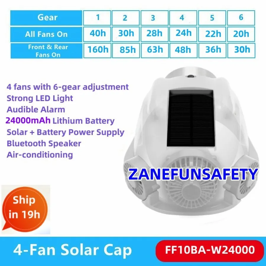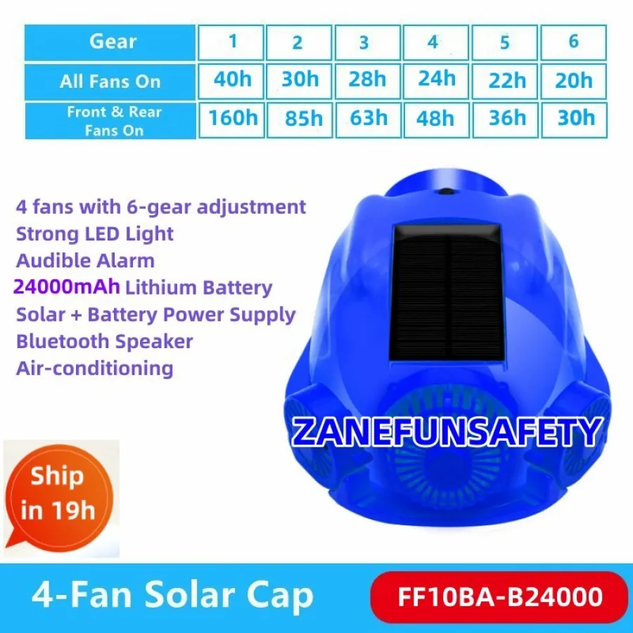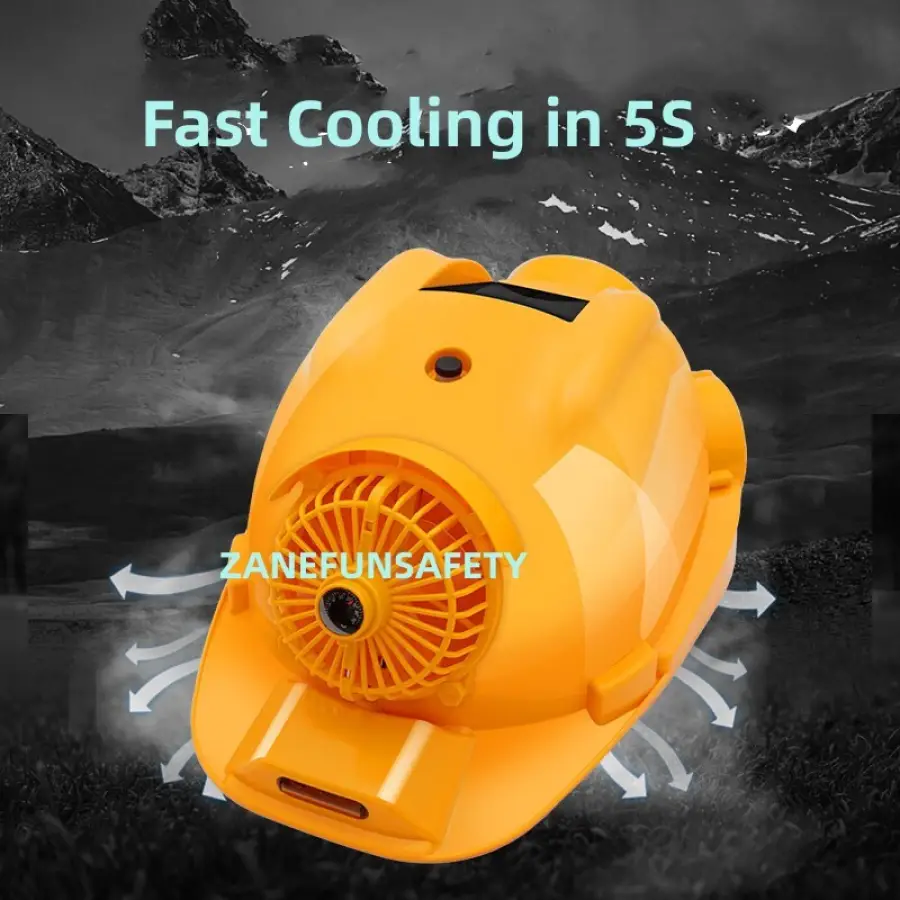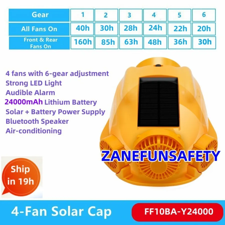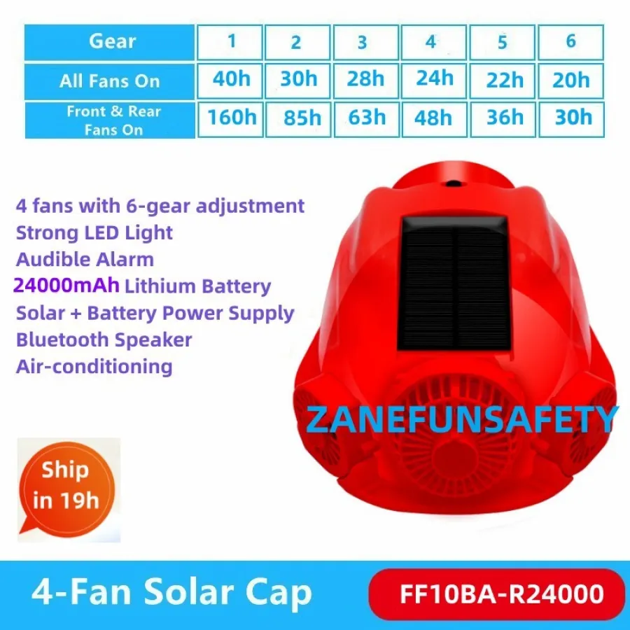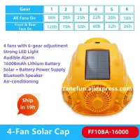 Certified ABS Helmet with 4 Fans, Nano Spray Air Conditioning, Bluetooth, FM Radio, LED Headlight, 9000mAh/12000mAH/16000mAh/20000mAh Rechargeable Lithium Battery(Power Bank), Audible SOS Alarm, and 1 Big Solar Panel