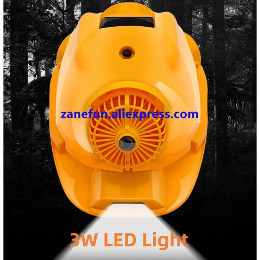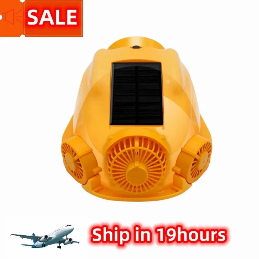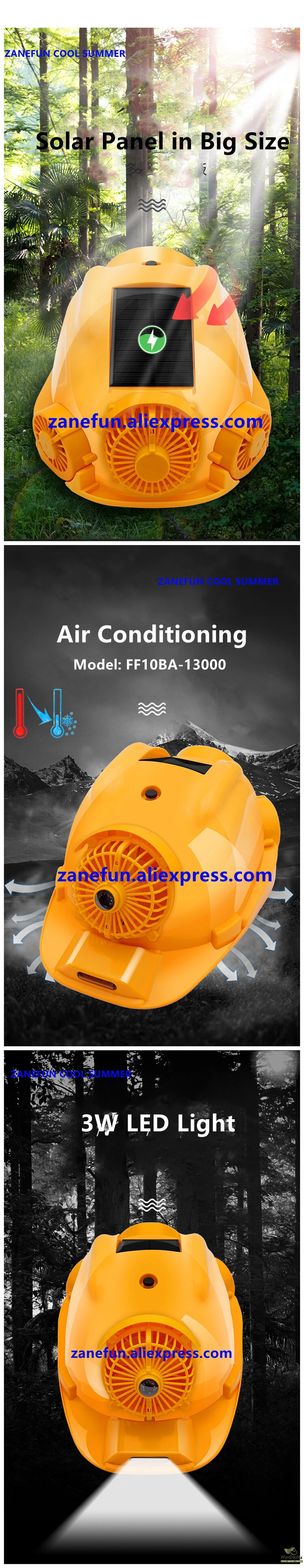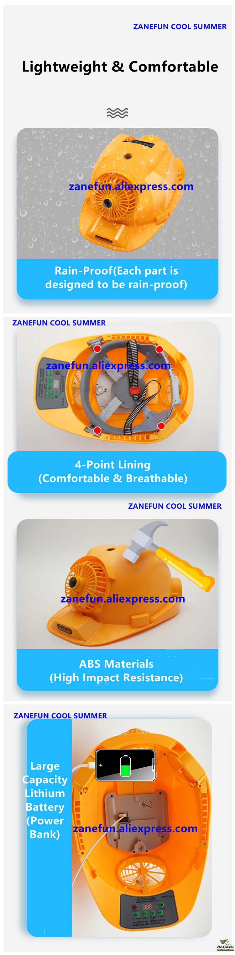 Certified ABS Helmet with 4 Fans, Nano Spray Air Conditioning, Bluetooth, FM Radio, LED Headlight, 9000mAh/12000mAH/16000mAh/20000mAh Rechargeable Lithium Battery(Power Bank), Audible SOS Alarm, and 1 Big Solar Panel