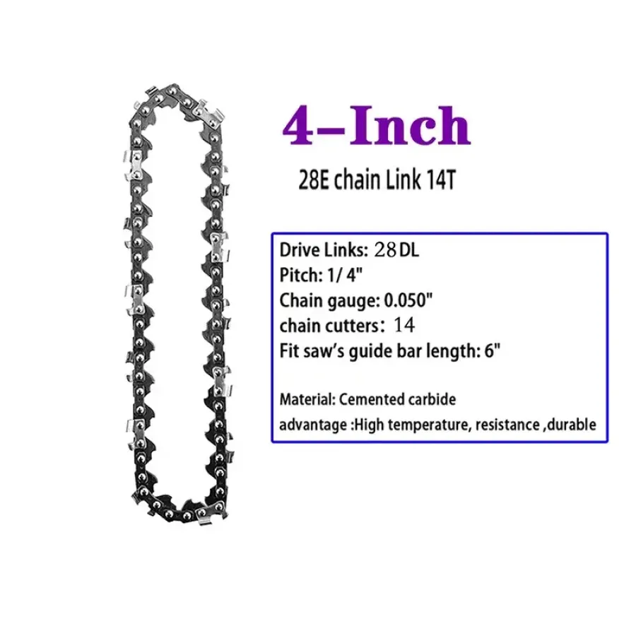 All the 4inch chainsaw chains cutters are plated with premium industrial hard chrome, of better wear resistance. Ramped depth gauges allows smooth high speed cutting while reducing kickback and vibration
