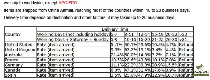 If you can't find the estimated delivery time on the product detail page, you can look at the following table for reference.
