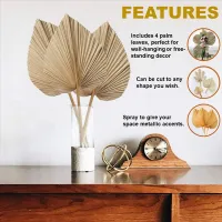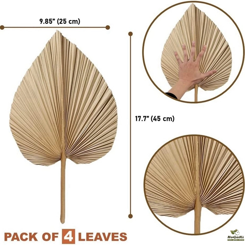[ NATURAL PALM LEAVES ] Palm leaf plants are manufactured without any treatment from dried flowers and natural plants. Unlike , the dried palm leaf is hand-trimmed with love, making each piece unique. Each leaf has its own shape, size, and color, which is a natural characteristic. [ SIZE OF PALM LEAF ]: Each palm fan is around 45 x 25cm which is appropriate to use, and these palm leaves can also be cut to the shape you need. With proper care, shelf life of dried palms is up to two years! [ DIY BOHO DECOR]: Our boho dried leaves are suitable decor for a boho room, , shop, house, office, wedding, new year, Christmas. You can use these leaves to make your favorite bouquets by floral decor, decorating vases, flower walls, hanging baskets or DIY flowers. color:Primary color Material:palm leaf size:45 x 25cm Package Contents: 4 x Palm leaf Only the above package content, other products are not included. Note: Light reflection and different displays may cause the color of the item in the picture a little different from the real thing. The measurement allowed error is +/- 1-3cm.