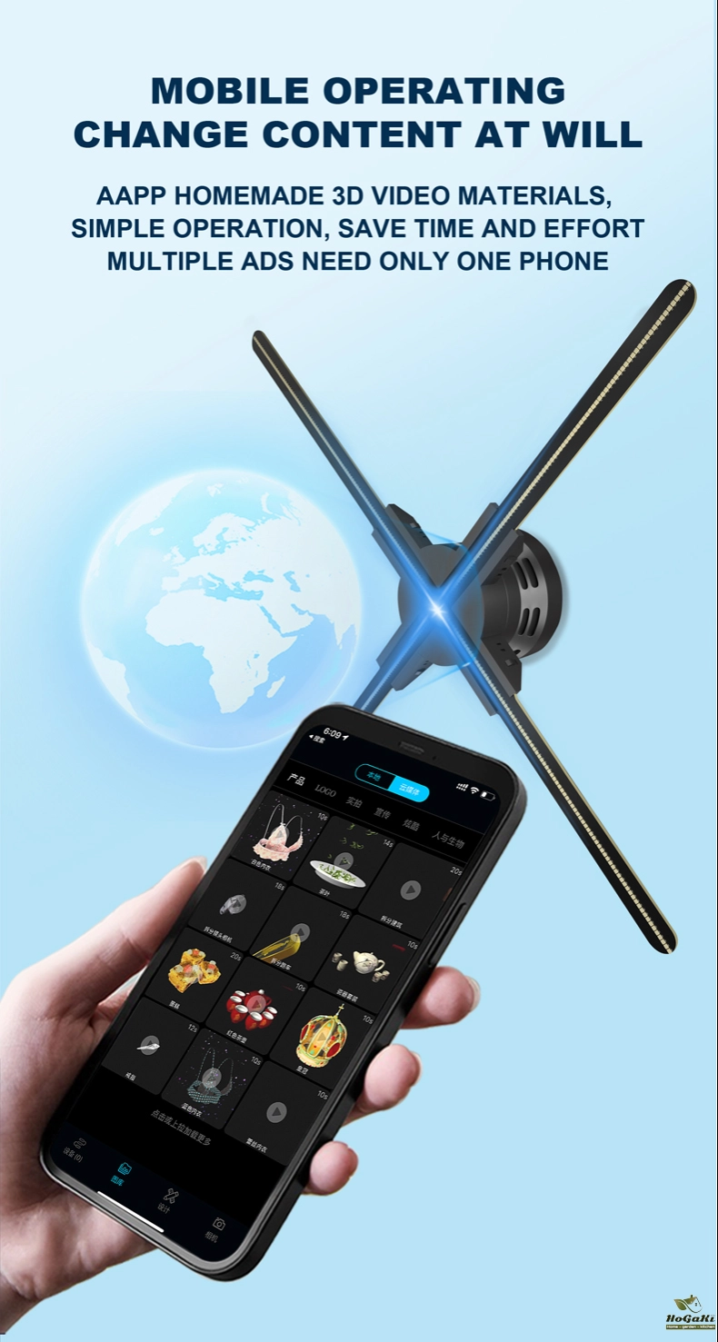 40-85cm 3D Fan Hologram Projector Wifi Control Remote Commercial Advertising Display Hologram Projector Transmit Picture Video
