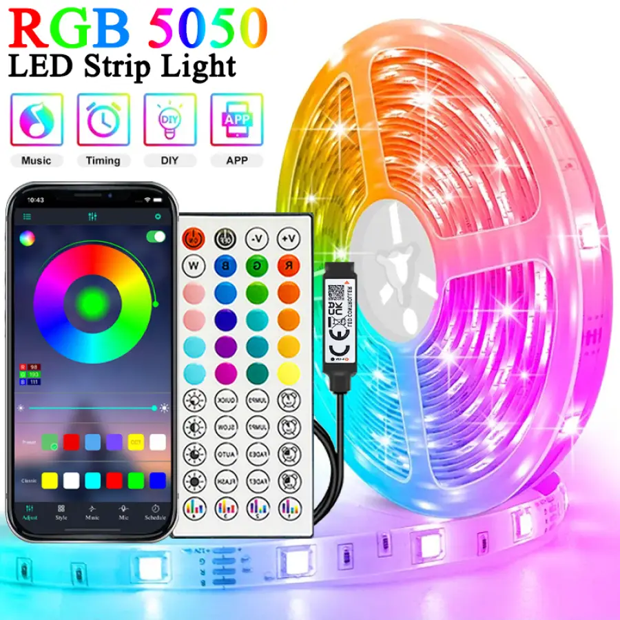 40M/131Ft Led Strip Lights APP 44Keys Music Sync Remote Control USB 5V RGB Flexible Tape for Room Decoration TV Backlight Diode