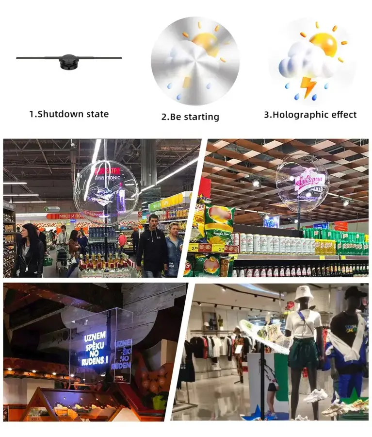 42cm 3D Holographic Fan Wifi Remote Custom ICONS DIY Video LOGO LED Neon Lights Rotating Display AD 3D Holographic Projector