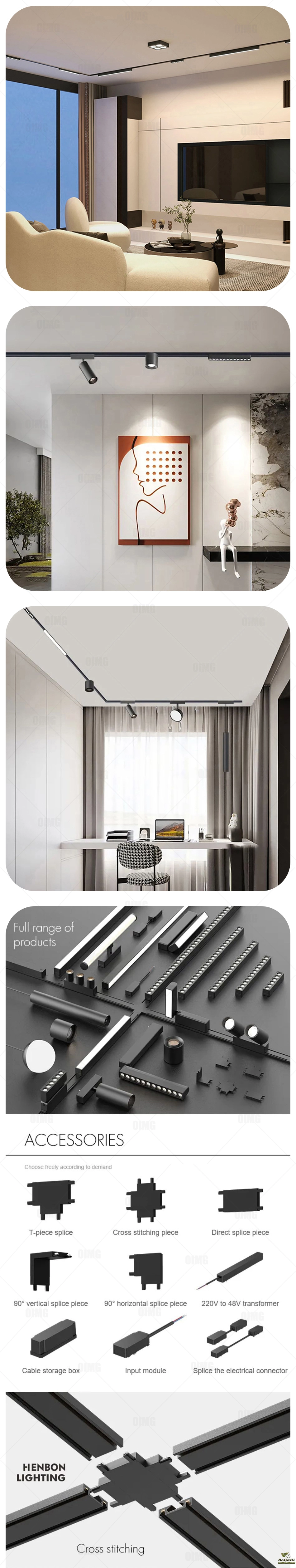 DC 48V 6mm Ultra-thin Magnetic Track Light System including rails、power supply 、lamps.