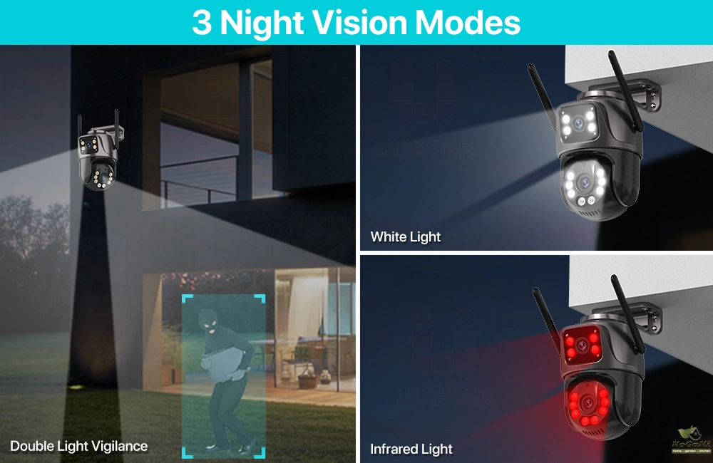Intelligent dual light visual modes- Infrared mode & Color night vision mode